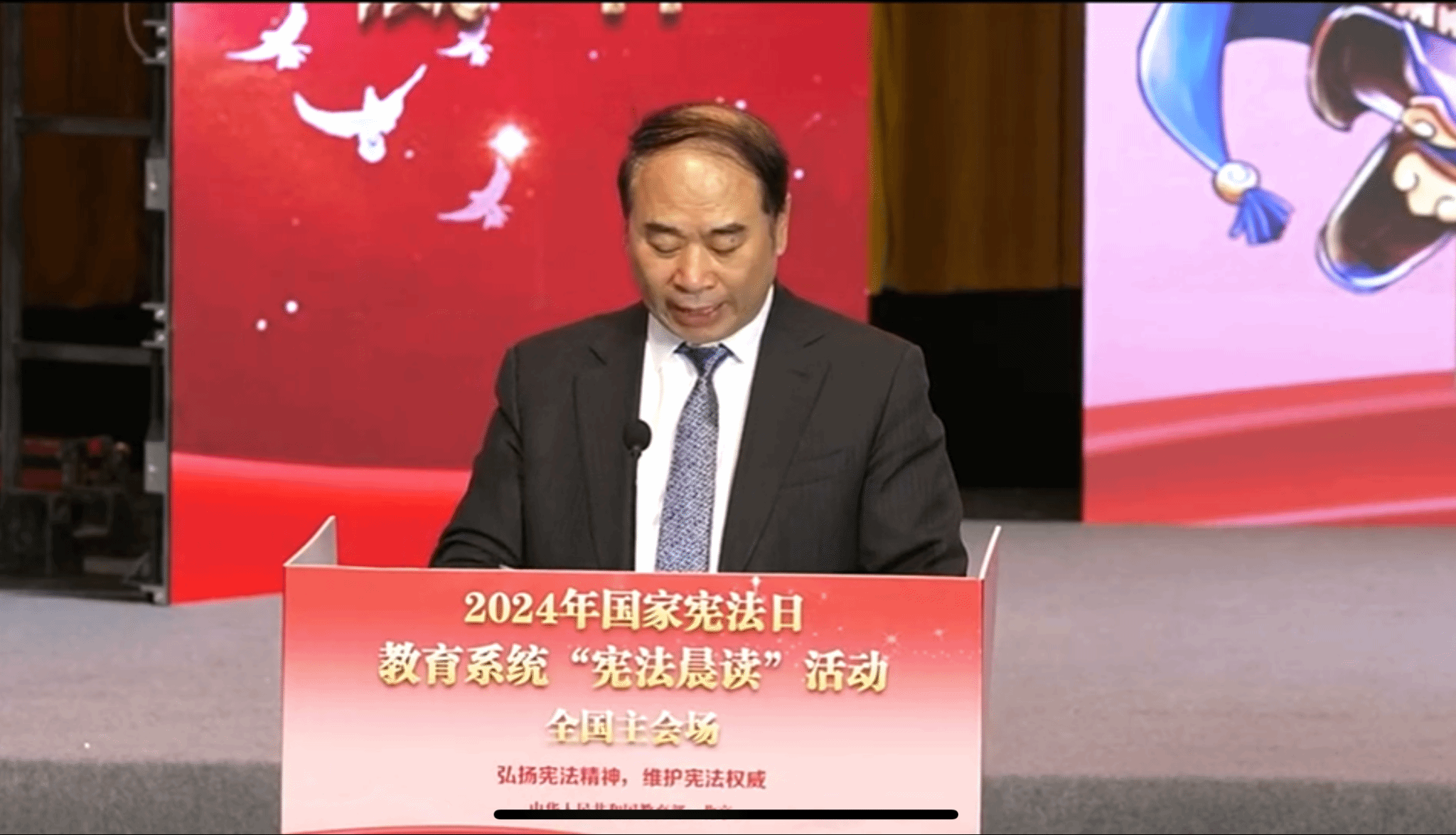 随后,全体人员共同观看普法网线上直播,同步参与“宪法晨读”活动,学生们精神饱满,跟读之声铿锵有力,在庄严氛围中深刻感受宪法的神圣权威。