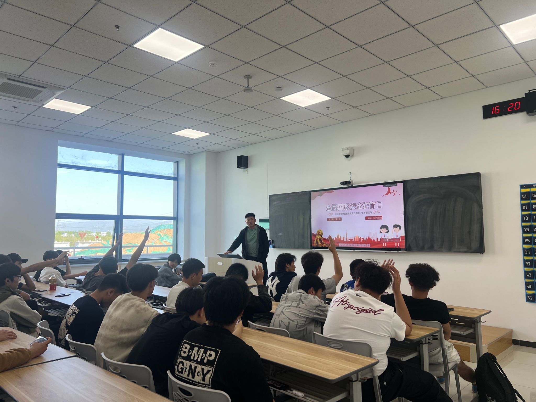 为了检验同学们对国家安全知识的掌握情况,班会还组织了一场别开生面的知识竞赛。竞赛题目涵盖了国家安全的各个方面,从军事安全到网络安全,从文化安全到生态安全,同学们积极参与,争相抢答,现场气氛热烈而紧张。