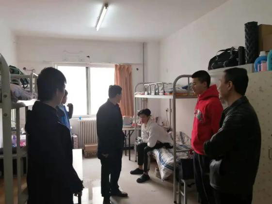 为创建文明整洁有序的学生公寓环境,促进学生积极参与宿舍文明建设,养成良好的生活及学习习惯,我院党委书记刘勇老师、院长刘涛老师、学工办主任苏菲老师及辅导员马德康老师,于2020年11月12日中午探望了我院六号楼的同学们,并对同学们的宿舍情况作出了进一步了解。