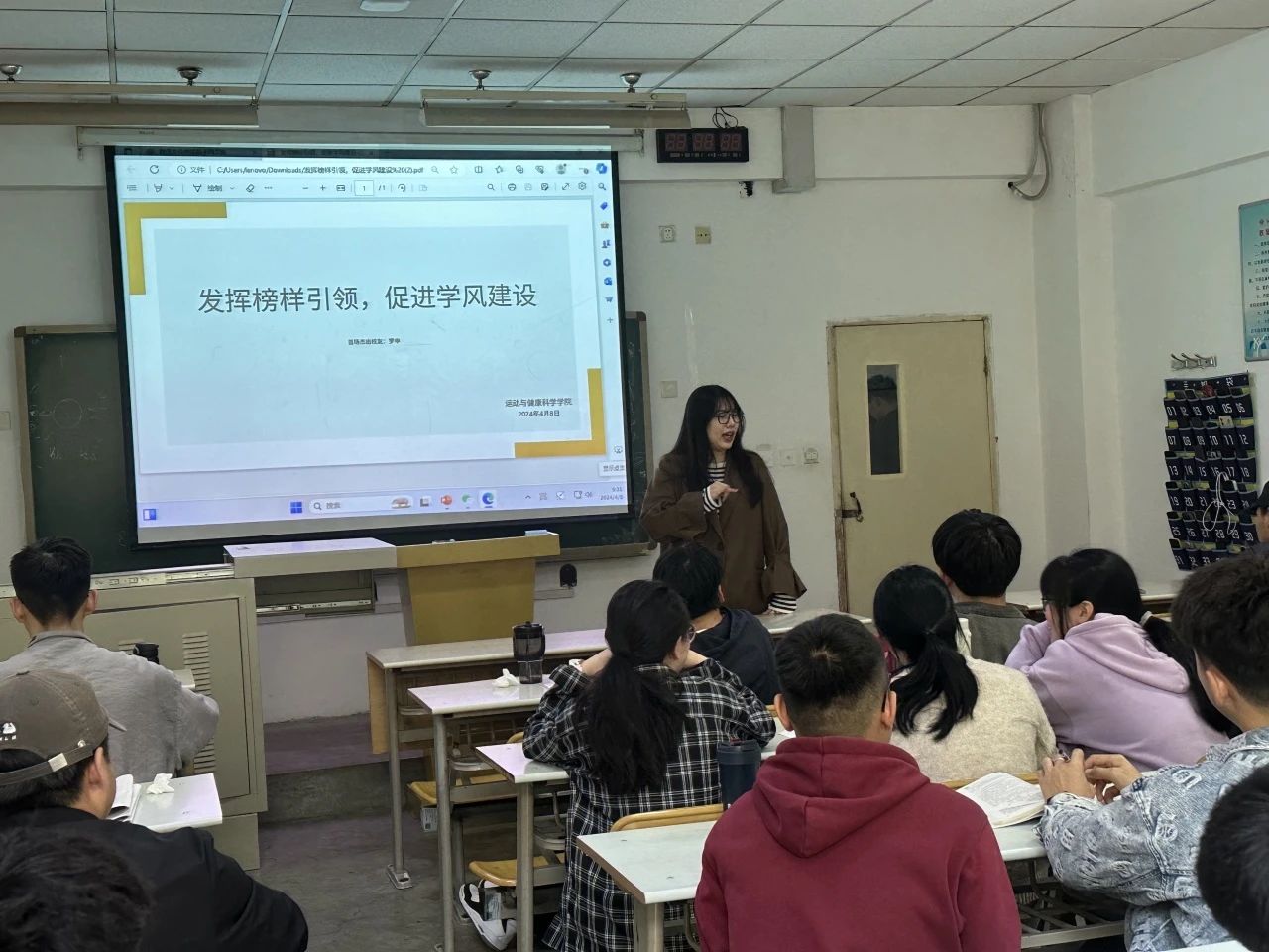为有力推动我校良好学风建设,运动与健康科学学院按照学校相关文件要求召开学风建设主题班会,深入学习、讨论、总结罗申校友励志报告,发扬其奋斗精神,帮助学生树立正确的价值观和学习态度。
