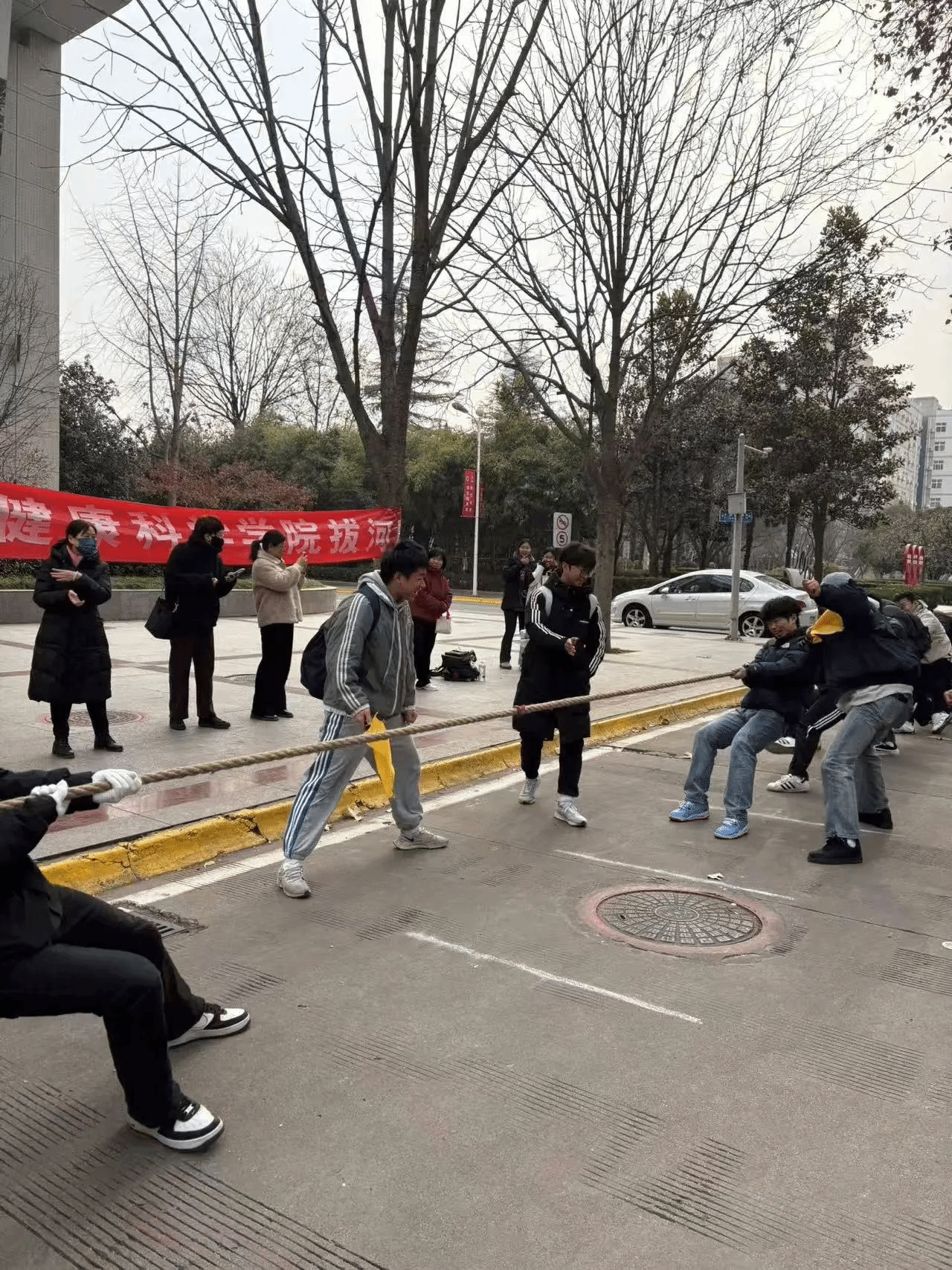 随着比赛的继续,我们于1月3日开展了“拔河友谊赛”。我们可以看到,不仅是学生们,老师们对于比赛也是同等的认真,看他们倾斜的身体,卖力的拉着绳子,身边是加油鼓劲的观众,比赛依旧激烈而精彩。老师与老师之间,老师与同学之间,都透露着集体的努力,众人的配合,在一阵阵呐喊与掌声中化作无穷的动力。