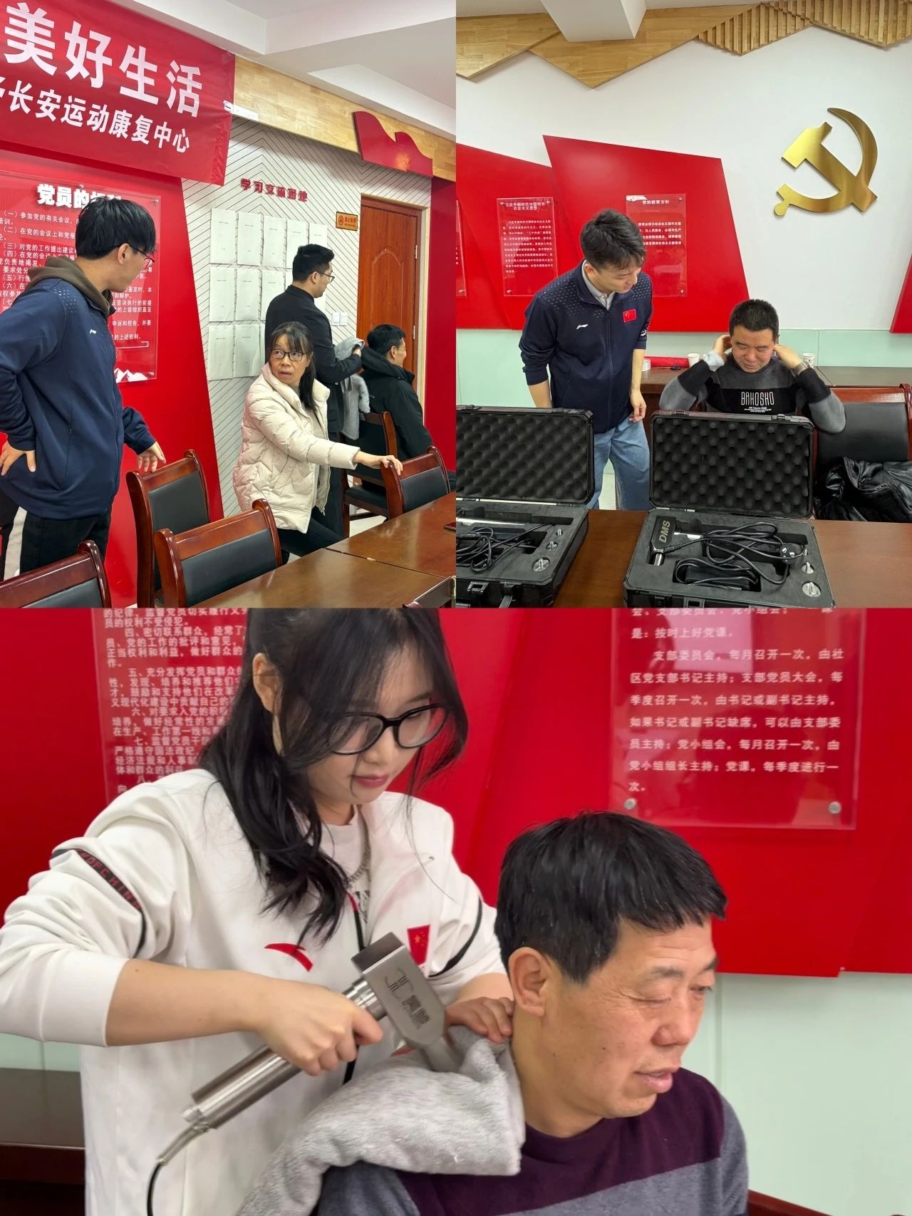 会议结束后,金专家和我校康保团队为西安六十二中的老师们和运动员们进行一对一的康复治疗和训练指导。使用DMS深肌松解仪为肩颈上肢有疼痛的患者进行治疗并提出后期康复动作指导,收获好评满满!本次外出联合活动完美落幕,也希望康保在以后的日子里能有更多学习交流外出义诊的机会!未来可期,携手共进。舍予长安运动康复中心负责人表示,未来将继续加强与高校的合作,积极开展各类公益活动,为普及运动康复知识、提升全民健康水平贡献力量。西安体育学院运动康复保健协会团队也表示,将继续发挥专业优势,积极参与社会服务,为健康中国建设添砖加瓦。