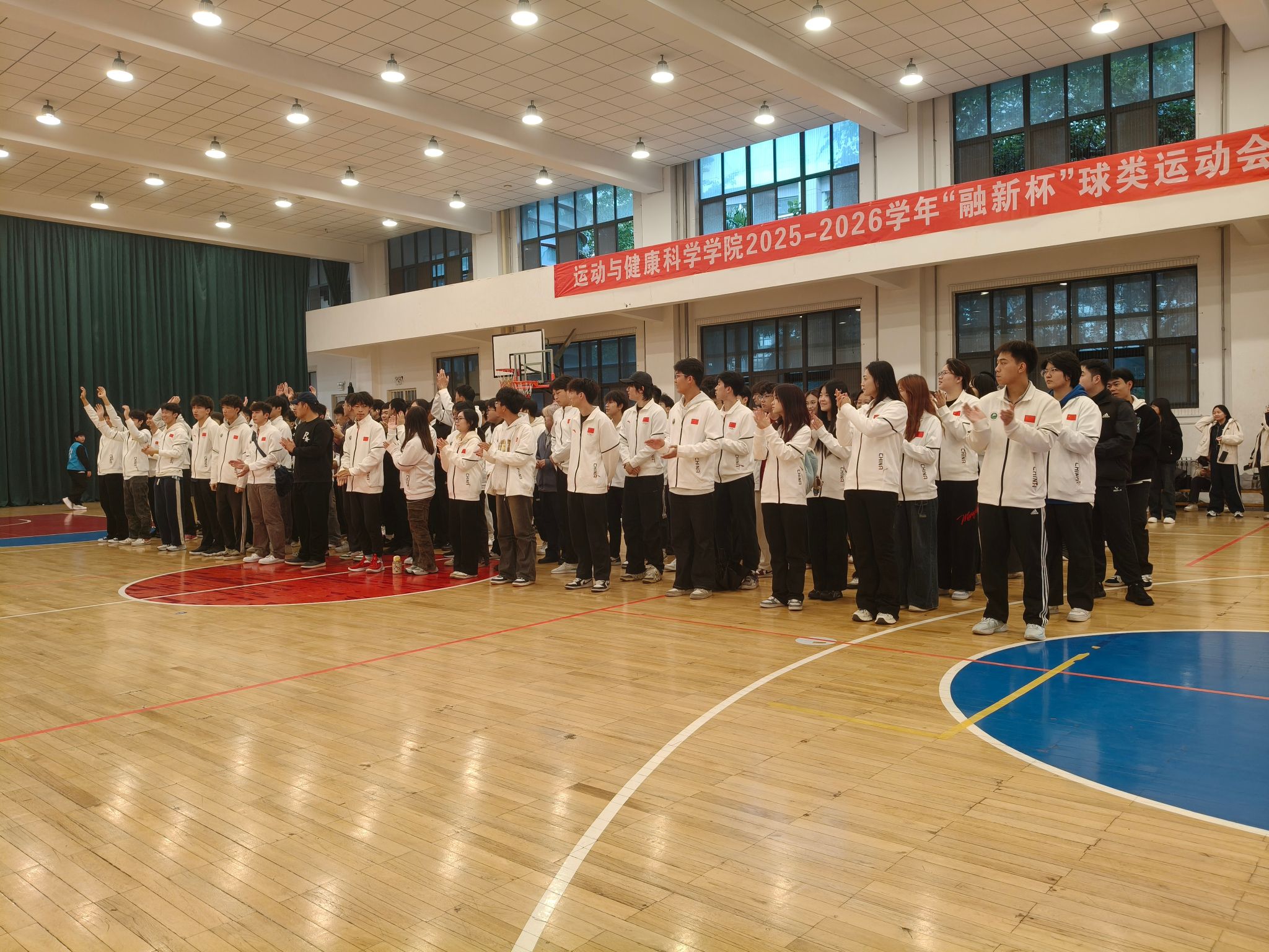 秋意渐浓,激情不减。10月17日中午,西安体育学院篮排馆内气氛热烈,运动与健康科学学院“融新杯”开幕式在此隆重举行。师生齐聚,活力迸发,共同见证这场属于青春与运动的盛宴。