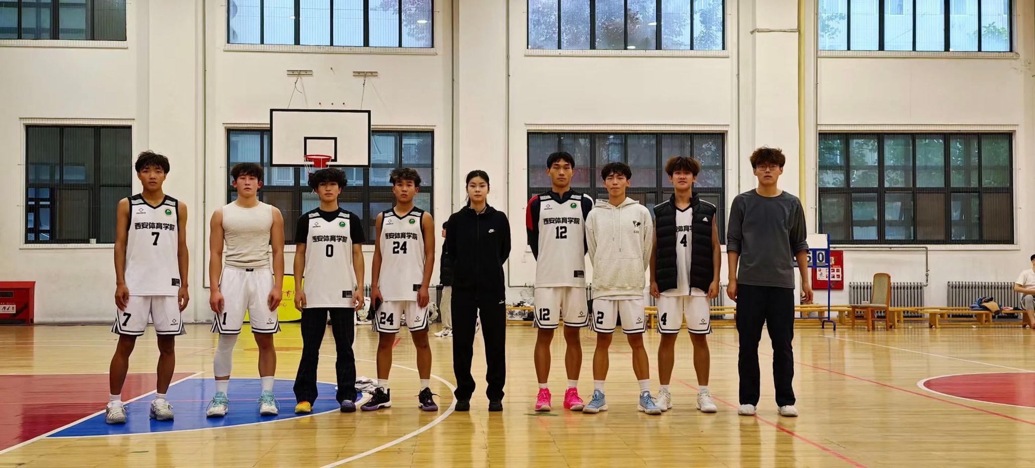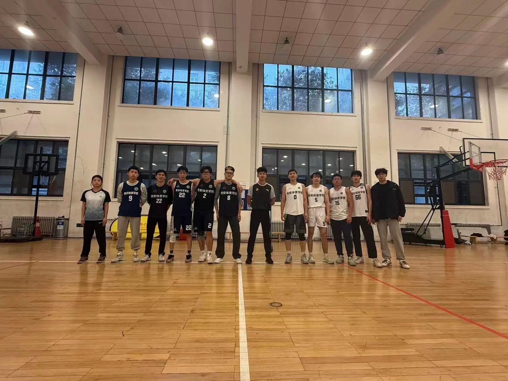 室内一场的较量同样精彩。23级运动人体科学与23级运动康复队狭路相逢,前者凭借丰富的经验和精准的进攻,始终掌握比赛主动权。最终23级运动人体科学队以50:43的比分获胜。23运康队员们敢打敢拼,展现了顽强的斗志,虽败犹荣! 这场比赛是青春与热血的碰撞,更是西安体育学院体育精神的生动诠释。每一支队伍都在赛场上留下了独属于自己的精彩,用汗水书写着对篮球的热爱与坚守。