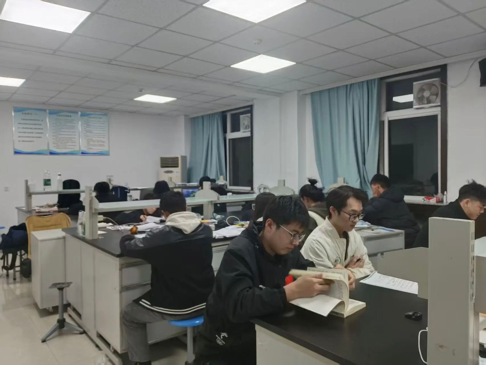 这份专注的背后,藏着运动与健康科学学院最坚实的支撑。为了给考研学子打造专属的"研途驿站",学院特意开放了实验楼207教室作为专用自习室,明亮的灯光、整洁的桌椅、安静的环境,让大家无需为抢占座位奔波,能全心投入复习 。学院延长了自习室开放时间,从清晨到深夜,这片空间始终为逐梦人亮着灯。在这里,每个人都在与时间赛跑,用专注对抗焦虑,用坚持书写希望。