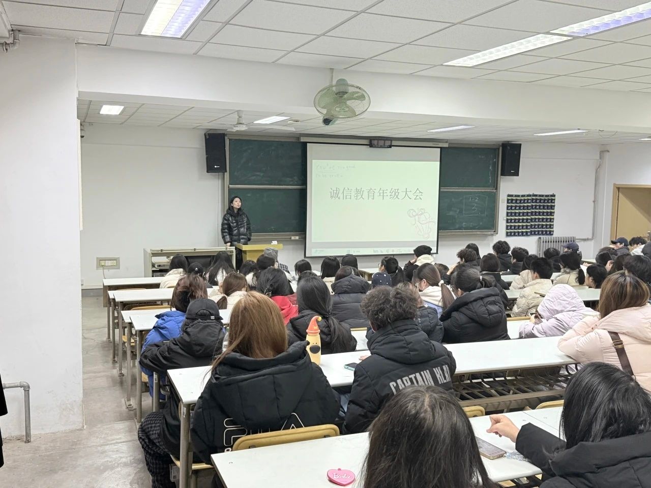 为营造公平公正的考试氛围,强化学生诚信应考意识,保障期末周考试有序开展,我院全体学生在各年级辅导员的带领下,召开“诚信教育”年级大会。