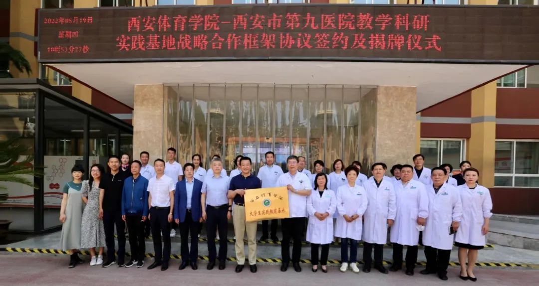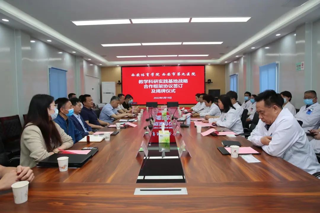 为贯彻落实教育部、陕西省教育厅关于高校书记校长访企拓岗促就业专项行动的部署和要求,进一步促进校企合作和毕业生更加充分更高质量就业,与此同时为服务陕西体医融合事业发展,加强西安市第九医院与我院康复专业、心理专业等在医、教、研方面的合作,充分发挥院校与医疗机构的优势,为高校、医院培养更多高素质、高技能的复合应用型人才。5月19日,西安体育学院与西安市第九医院战略合作框架协议签约及揭牌仪式在市九院一号会议室举行。
