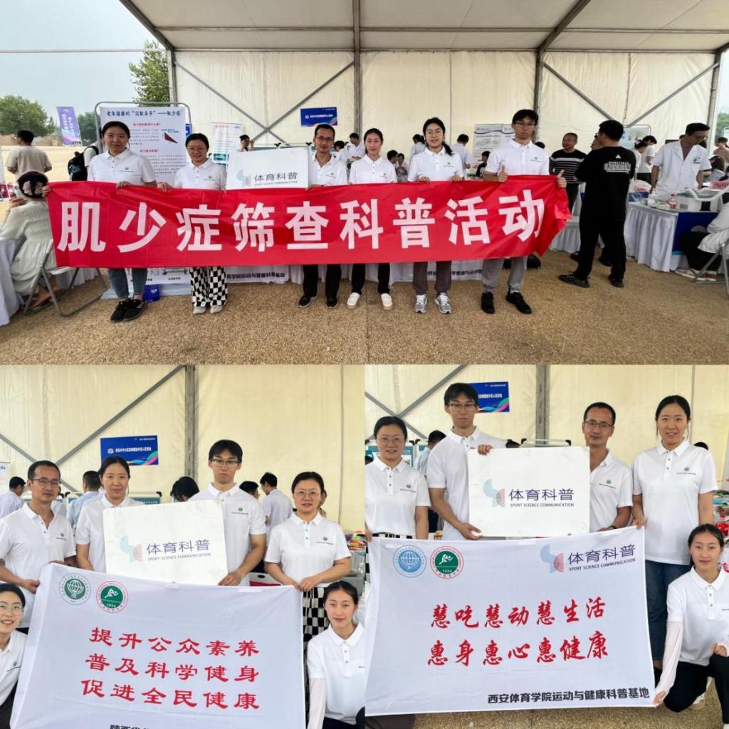 西安体育学院运动与健康科普基地、陕西省公众科学素质与运动健康研究中心由运动与健康科学学院苟波、邵丽娜、宋洋老师带队,林云志、樊怡辰、刘梦瑶等运动康复专业的硕士研究生参与,开展了以“携手防肌少,健康乐享老”为主题的老年人肌少症筛查科普活动。此次科普活动的开展充分考虑了我国人口老龄化现状以及肌少症在中国老年人群中逐渐攀升的趋势,旨在通过普及肌少症发病原因、肌少症危害以及防治措施,提高老年人科学素养,从而改善其生活质量,以应对我国人口老龄化带来的挑战。