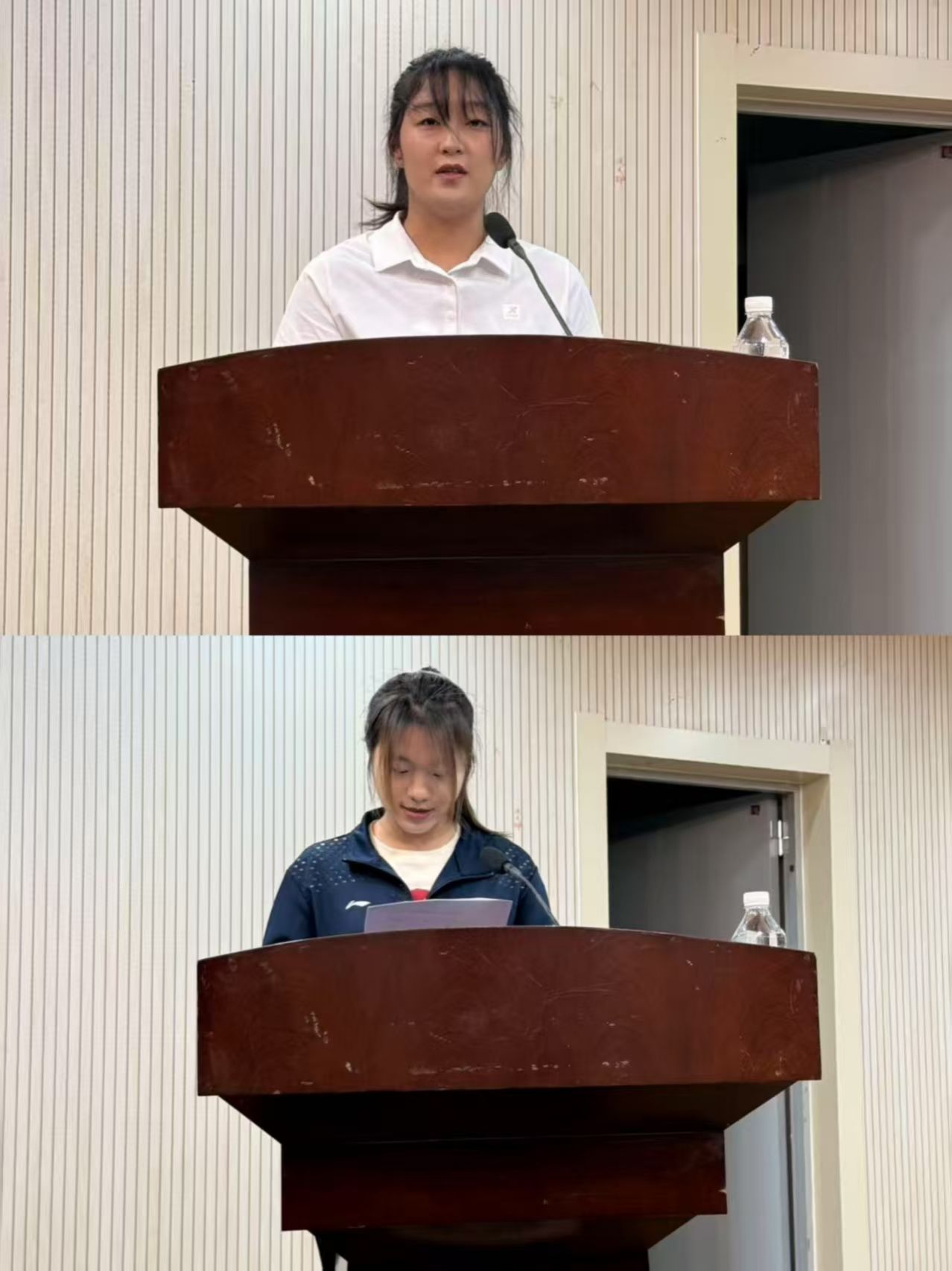 在经验分享环节,2021 级优秀实习生代表张烨驰同学结合自身实习经历,分享实习过程中遇到的挑战、收获与成长。2022 级学生代表杨佳欣同学进行表态发言,表达对实习生活的期待与决心,代表全体同学承诺将把握机会,努力提升专业技能。