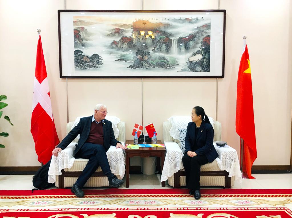 11月7日上午,副校长谢英在二号办公综合楼会议中心会见丹麦葛莱体育运动教育学院原校长Finn Berggre及中国办事处负责人高志鹏先生。国际交流中心工作人员、我校参加过葛莱短期研修的教师代表一同参会。