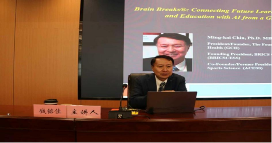 钱教授作为运动生理学博士、国际运动与体育教育学会(AIESEP)院士,在体育健康促进领域潜心钻研数十年,其主导的Brain Breaks®项目已在全球70多个国家开展实践,并在全球20余个国家推广应用,构建了成熟的国际合作网络与资源共享体系。讲座中,钱教授结合自身丰富的国际组织工作经验,深入解析了“未来学习+整体福祉+人工智能教育”的融合逻辑,并着重强调国际合作是打破学科发展瓶颈、应对全球体育教育共性挑战的核心动力。他指出,Brain Breaks® 项目成功,关键在于建立跨国学术资源共享机制与国际科研项目联动体系,而西安体育学院作为丝绸之路体育教育联盟的发起院校,具备得天独厚的国际合作优势。依托这一优质交流平台,学校未来可牵头举办“丝绸之路体育教育国际论坛”汇聚沿线国家及全球体育教育专家、政策制定者与一线实践者,围绕“体育+健康+AI”融合创新、传统体育文化国际化传播等议题开展深度研讨,打造具有全球影响力的体育教育交流品牌。