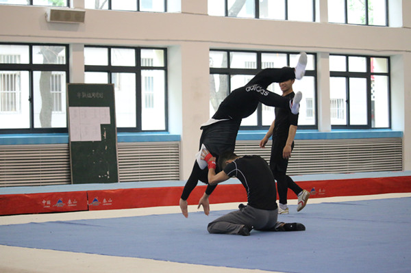 姜涛同志高度赞扬了队员们放弃休息时间、刻苦训练所表现出的良好精神风貌,并希望在训同学们向我院培养的肖俊峰、冯敬等优秀体操运动员学习,树立雄心、勇攀高峰,争取在2017年第一届全国高等院校(体育院校)体操锦标赛上取得好成绩。