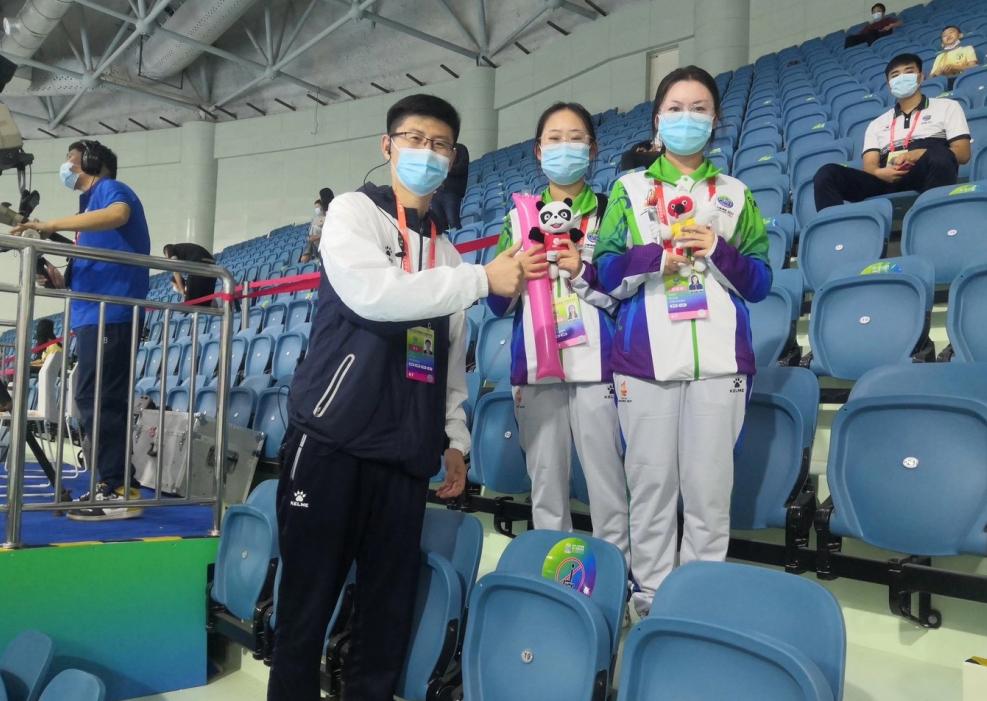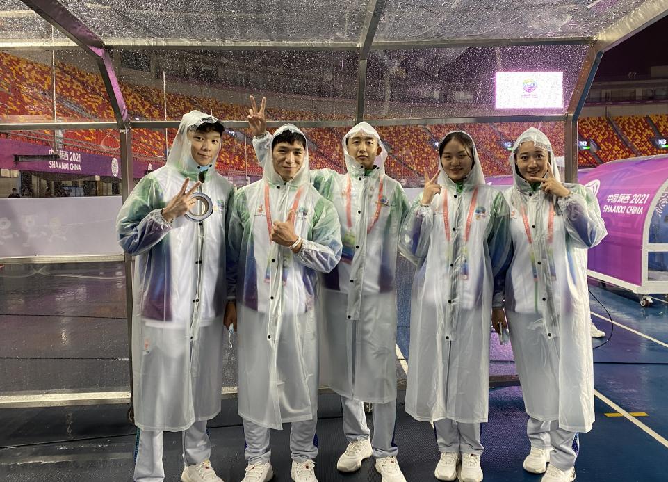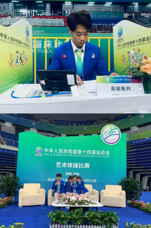 运动训练学院张佩莉、郑峰、于昕、黄环、张龙、王伟、南海涛、刘志云等20余名师生分别在手球、曲棍球、棒球、垒球、橄榄球、蹦床、游泳、田径、空手道等项目竞委会担任不同的岗位,他们坚守岗位,履职尽责,圆满的完成了比赛任务,受到了各项目竞委会的一致好评。学院辅导员南海涛是棒球竞委会驻村联络员,积极与村委会、棒球竞委会沟通协调,保障参赛队伍各项需求,为运动员取得好成绩贡献自己的力量,被全运村授予“敬业之星”荣誉称号;2019级学生朱子彤,在第十四届全国运动会蹦床、艺术体操项目竞委会竞赛组织处工作,担任蹦床、艺术体操竞委会驻全运村联络员一职,该同志奉献精神强,封闭食宿在全运村,不讲困难、不提条件、加班加点、默默奉献,利用个人专业优势出色的完成了技术官员在全运村的服务保障工作和竞委会交办的其他竞赛组织工作,体现出极佳的专业素养,获得了竞委会和全运村的高度认可,被全运村授予“党员保赛模范岗和每日之星”荣誉称号;学院党政办公室副主任刘志云,在十四运会担任空手道项目联络官,他尽职尽责,勇于担当,积极与组委会、中国空手道协会、省拳跆中心及项目竞委会沟通协调,同空手道项目竞委会工作人员密切配合,为十四运空手道项目圆满举办做出了积极的贡献,受到了空手道项目竞委会的感谢。