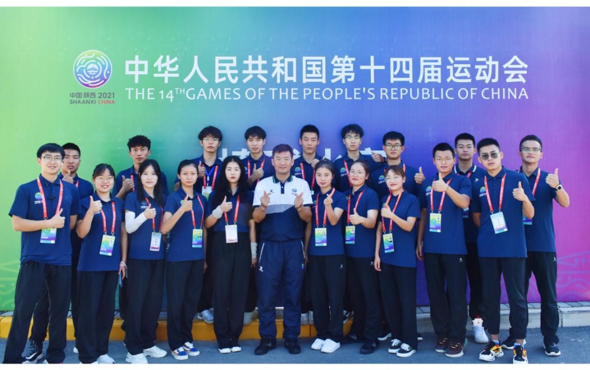 和谐中国,全民全运。在中华人民共和国第十四届运动会中,体育教育学院共有近百名师生倾心参与,其中裁判员15人,执裁田径、游泳、体操等项目的比赛,各项目技术官员及工作人员8人,学生志愿者 56人,并且周家颖等老师带队为在本届全运会取得优异成绩的陕西滑板队和竞走队提供了为期四年的科技服务。体育教育学院师生以饱满的工作热情和认真负责的态度,充分发扬西体精神,切实履行职责,圆满完成了本次全运会安排的各项工作,也进一步点燃我院所有师生的工作热情和学习动力。