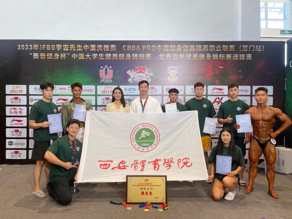2023年中国大学生健美健身锦标赛暨世界健美健身锦标赛选拔赛5月26日-30日在中国厦门举行,本次比赛共有70支参赛代表队,450余人参赛运动员。赛事规模强大竞争激烈,我校健身健美代表队在本次比赛上获得佳绩,研究生部李想获得古典健美B组冠军,运动休闲学院徐跃刚获得男子健身公开组亚军,武术学院戴政奇获得男子健身模特B组亚军,运动休闲学院王凡获得男子健身模特c组第四名,运动休闲学院地里沙提获得男子健体A组第七名,在70支代表队中我校健身健美代表队获得团体总分第五名!