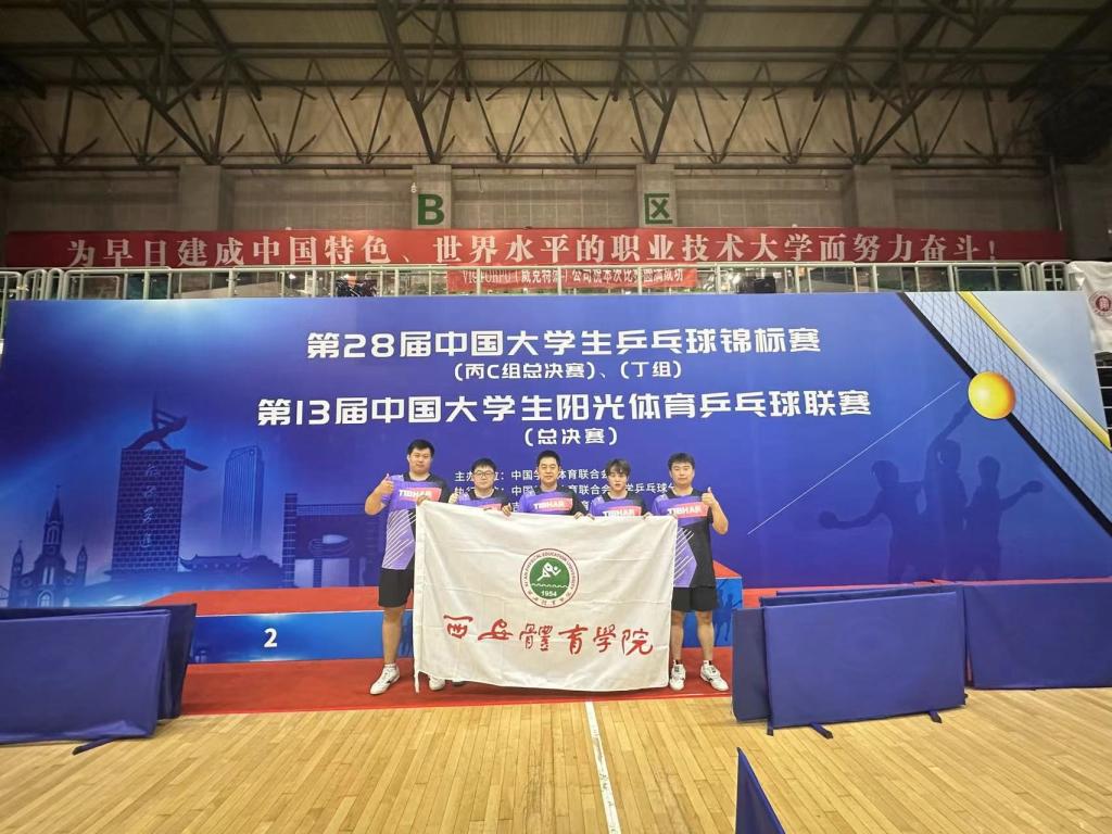 我校乒乓球代表队获得总决赛男子团体第五名、男子单打第五名。我校首次参赛,跻身全国八强,也是前八名中唯一的学院代表队,开创了我校在全国大锦赛中的历史。