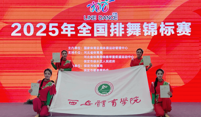 操舞教研室的吕默带领着艺术学院的本科生和研究生组成我校排舞队出征。勇夺甲组女子小集体平滑类自选项目第一名及甲组中级原创项目第二名两项重磅荣誉,同时我校排舞队获得体育道德风尚奖。这份荣耀属于每一位挥洒汗水的队员和默默耕耘的指导团队。吕默老师在赛后激动地表示,“从备赛到出征,学校为我们提供了坚实的保障。同学们将课堂所学转化为赛场实力,用艺术诠释体育精神,用拼搏书写青春篇章。她们在国家级平台展现的西体风采,正是西体学子深化体艺融合育人理念的生动注脚”。