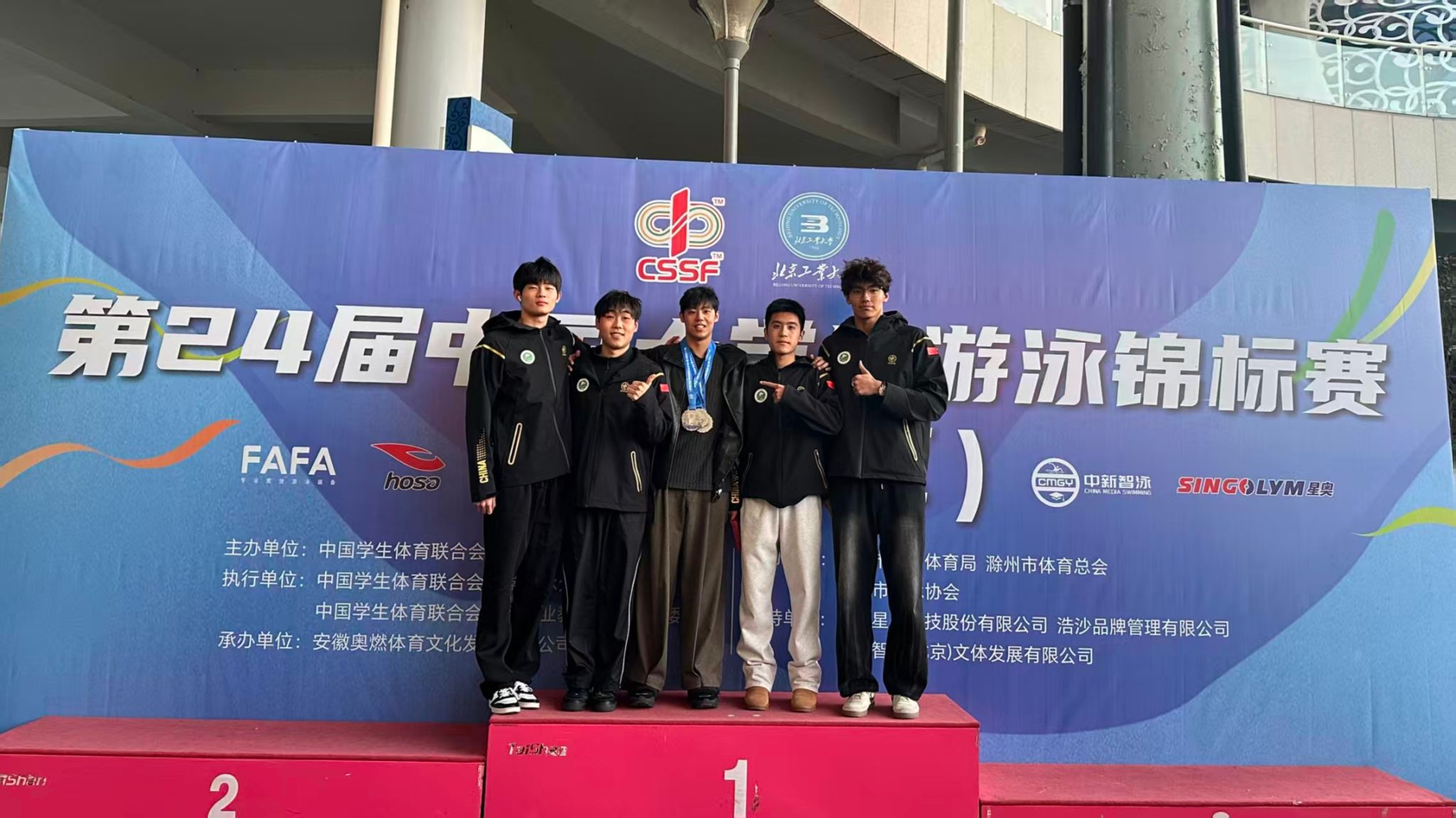 本次比赛我校选派15名学生运动员组成参赛队伍出征此次赛事,由游泳教研室殷剑侠和赵博阳老师带队参赛。最终斩获3银4铜以及多项前八名的优异成绩,不仅以丁组团体总分第七的位次跻身前列,同时荣获体育道德风尚奖,创造了我校在此类比赛中取得的最佳成绩!