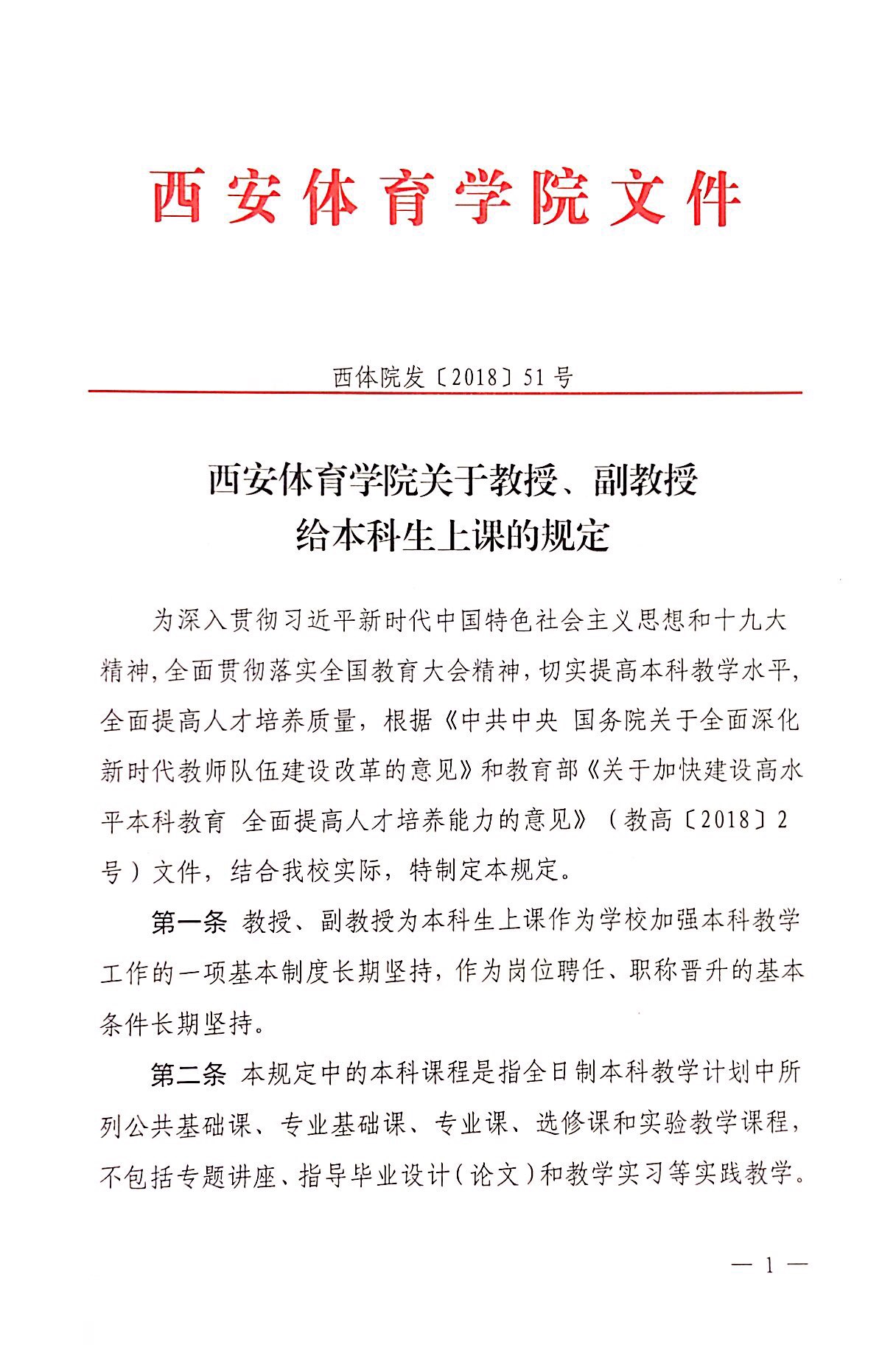 西安体育学院关于教授、副教授给本科生上课的规定