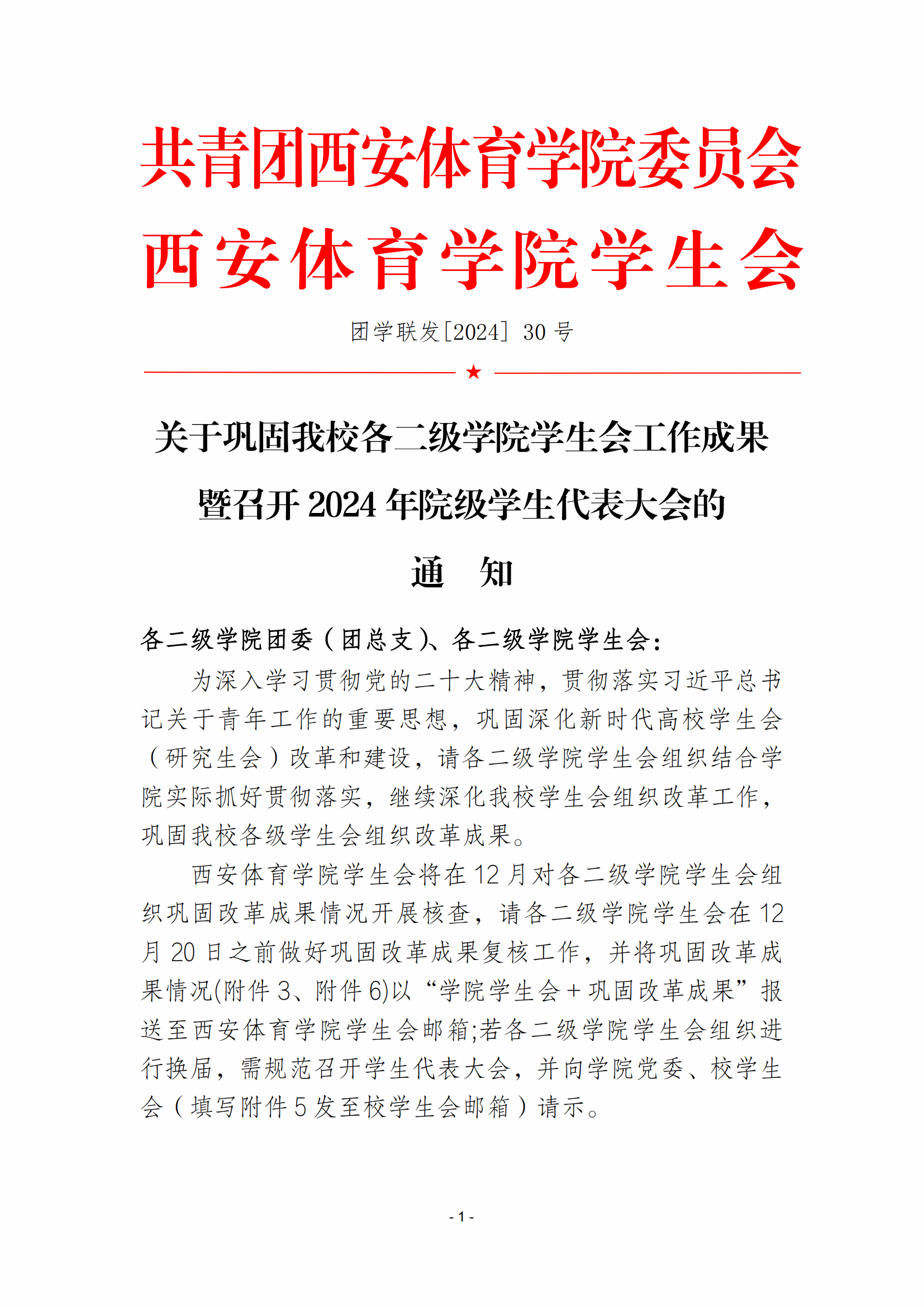 关于巩固我校各二级学院学生会工作成果 暨召开 2024 年院级学生代表大会的通 知