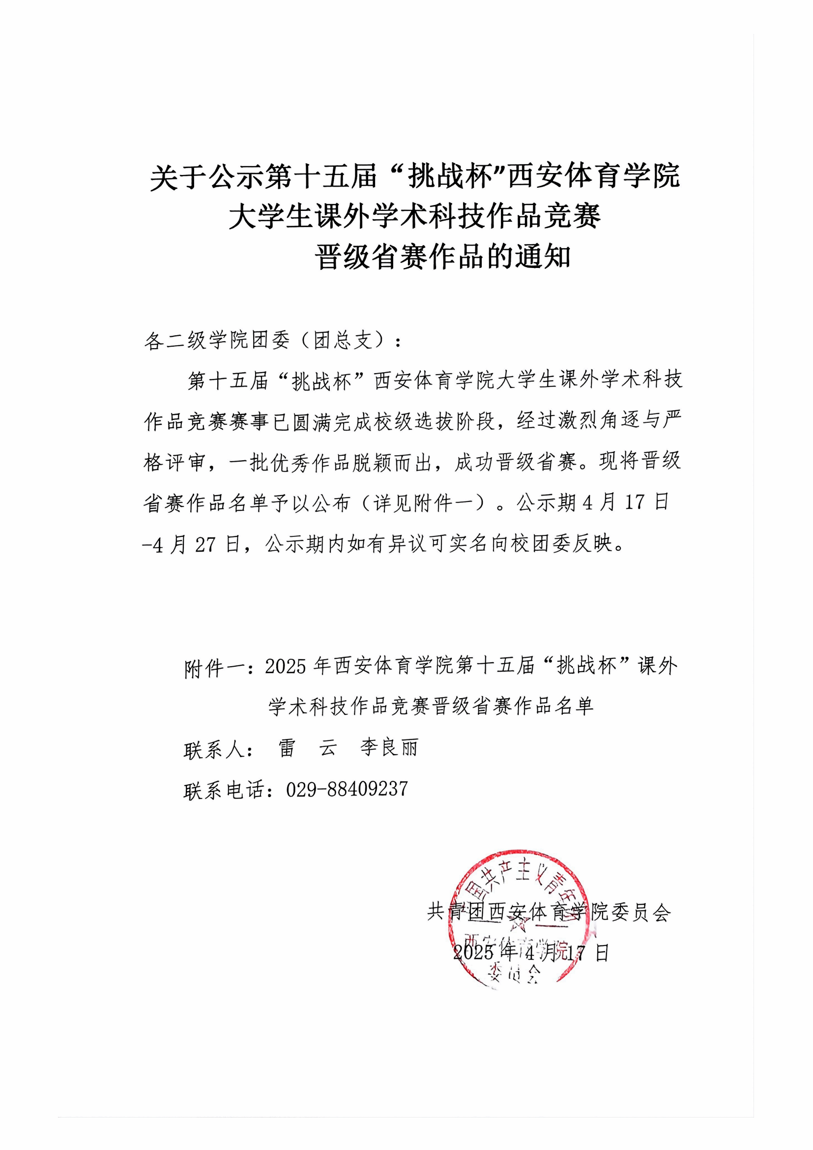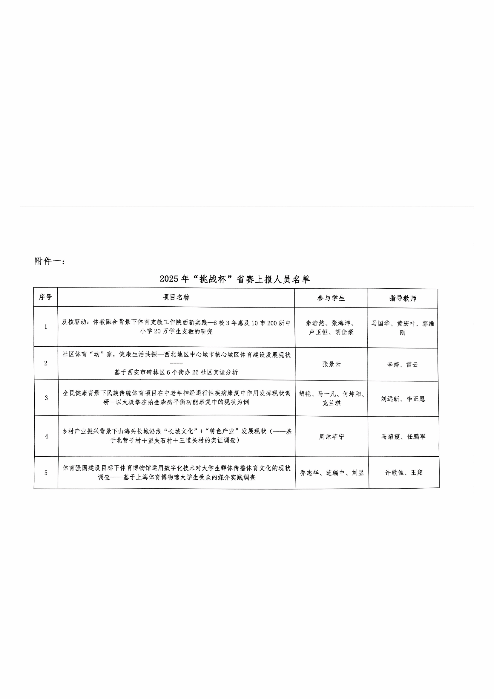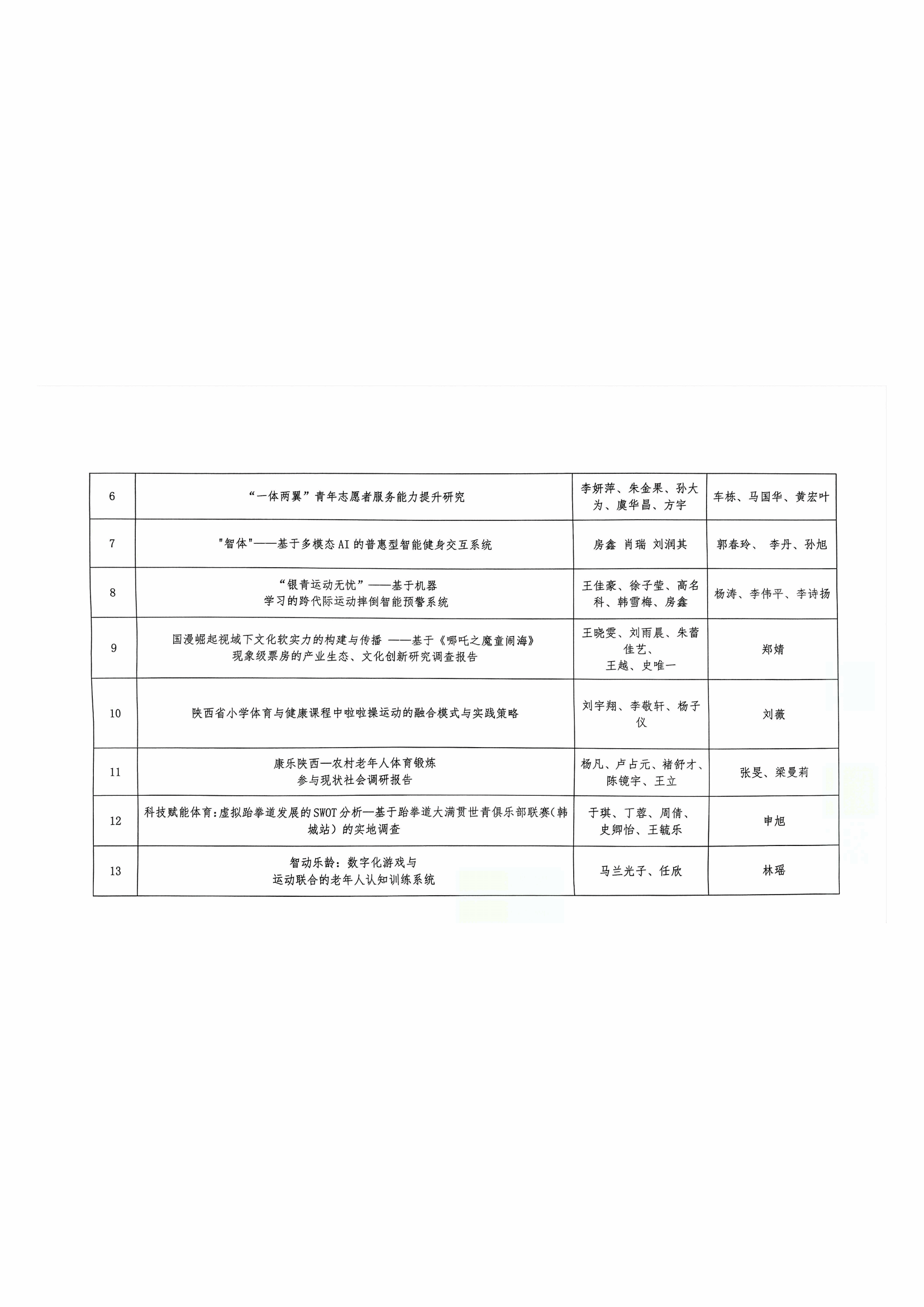 第十五届“挑战杯”西安体育学院大学生课外学术科技作品竞赛晋级省赛作品