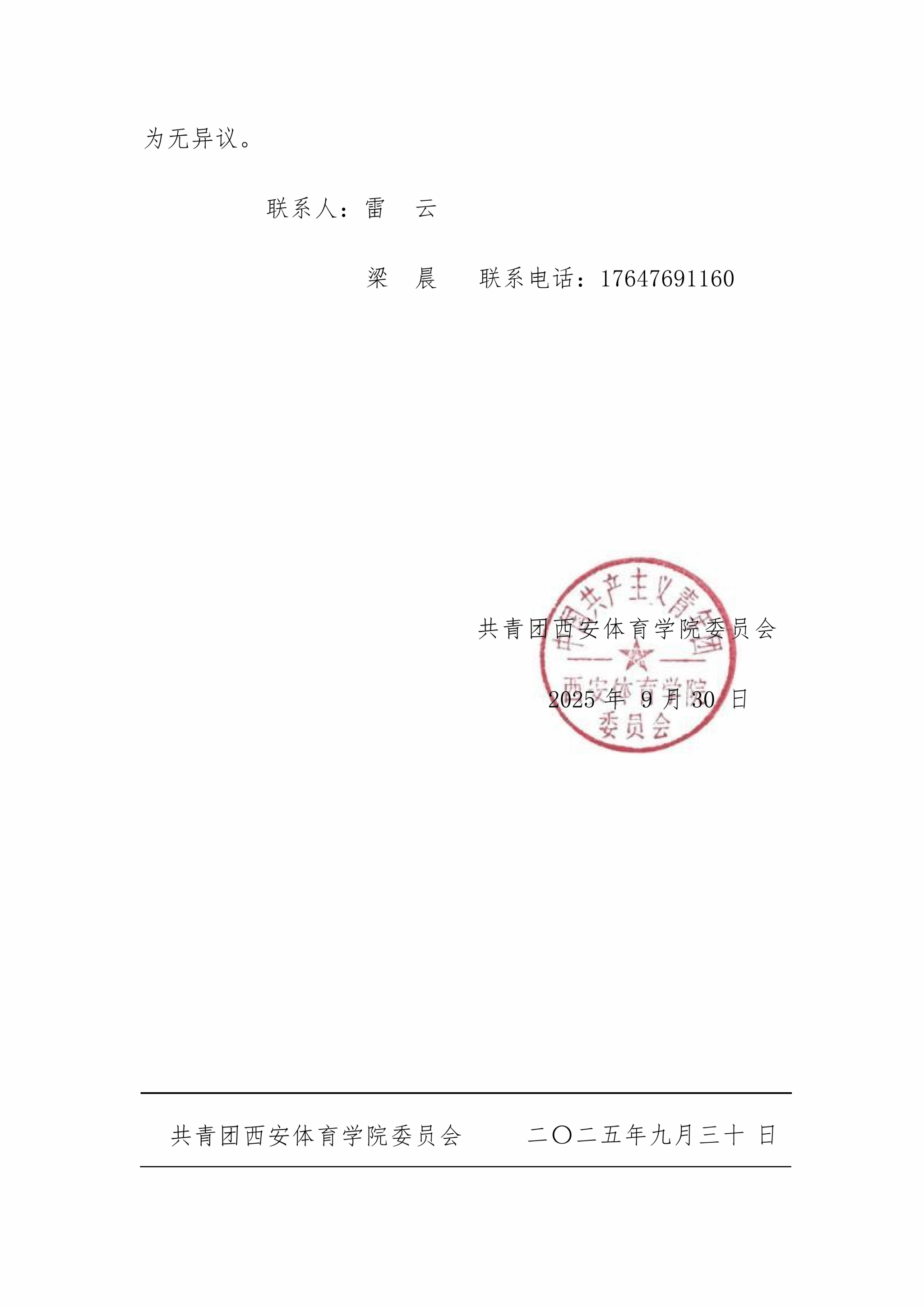 西安体育学院2025年“校团委实践锻炼”录取名单公示