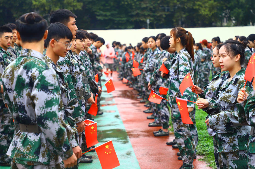 2019级的新生在军训场上