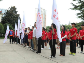 出征仪式在嘹亮的国歌声中开始。运动与健康科学学院张宏莉同学作为志愿者代表发言时表示,要在实践中秉承西体精神,践行品格,向人民群众学习,运用专业知识传播先进文化,扎实基础,奋发进取,始终以饱满的精神状态,全力以赴的投入到志愿服务的工作中,将梦想化为行动,为祖国发展贡献青春和力量。