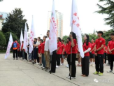 西安体育学院教务处处长张葆欣为足球学院红色先锋支教团授旗