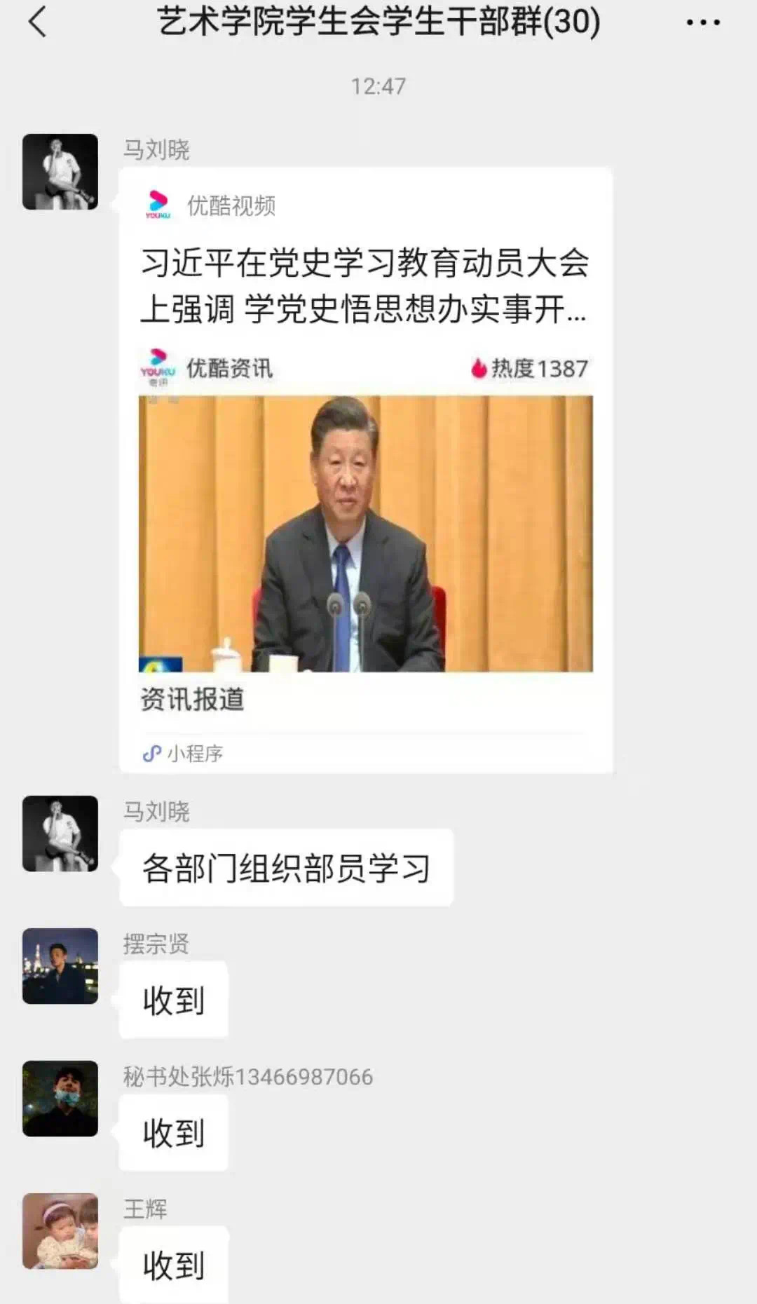 【党纪学习教育】艺术学院开展线上学习“党史学习教育动员大会”活动