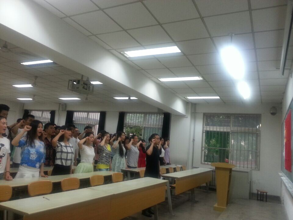 在中国共产党建党93周年来临之际,体育艺术系学生党支部于625日上午在教学楼105教室举行了新党员入党宣誓仪式。参加本次宣誓仪式的有体育艺术系学生党员及新发展的预备党员共计54人。