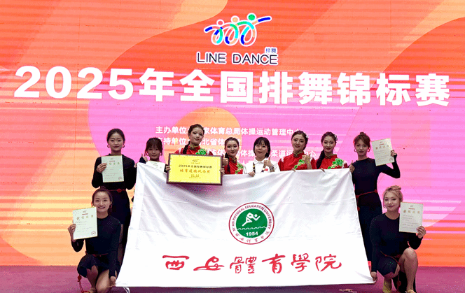 操舞教研室的吕默带领着艺术学院的本科生和研究生组成我校排舞队出征。勇夺甲组女子小集体平滑类自选项目第一名及甲组中级原创项目第二名两项重磅荣誉。同时我校排舞队获得体育道德风尚奖。这份荣耀属于每一位挥洒汗水的队员和默默耕耘的指导团队。吕默老师在赛后激动地表示,“从备赛到出征,学校为我们提供了坚实的保障。同学们将课堂所学转化为赛场实力,用艺术诠释体育精神,用拼搏书写青春篇章。她们在国家级平台展现的西体风采,正是西体学子深化体艺融合育人理念的生动注脚”。