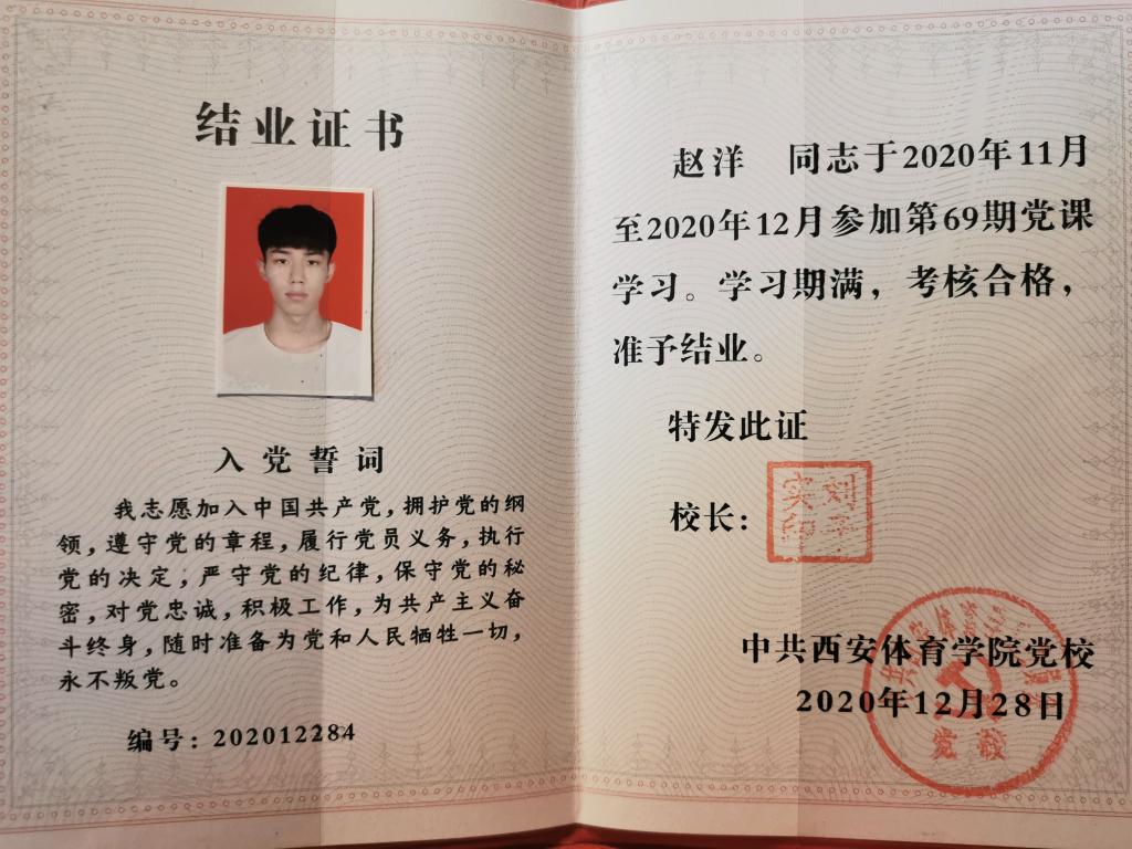 在学习工作方面,赵洋同学积极参加团支部活动,所在班级团支部智慧团建评价等级“五星级”,在2020-2021学年荣获西安体育学院艺术学院“五四红旗团支部”、“优秀班集体”等荣誉称号。