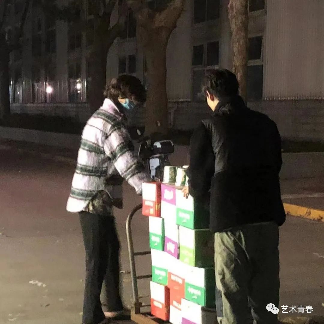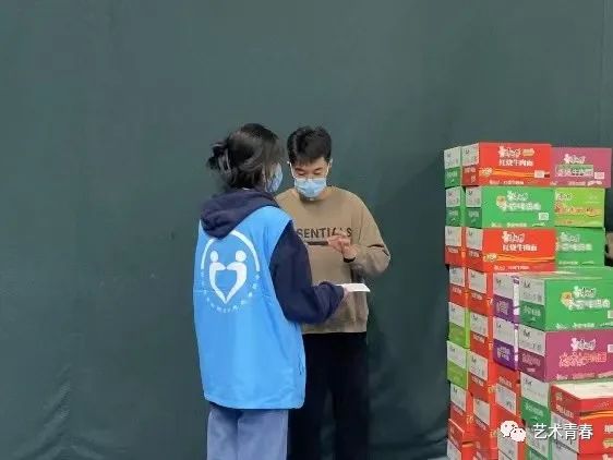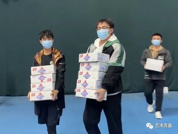 发放过程中,艺术学院学生会干部有序地从旧网球馆搬运物资到各宿舍楼下,由各年级辅导员及各宿舍楼长依次进行爱心食品的发放,领取过程中做到不扎堆,不聚集、有序排队。