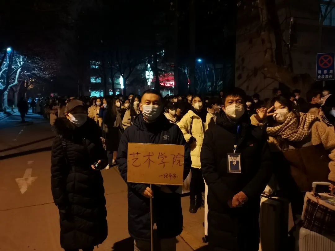 凌晨三点艺术学院返乡学子整装待发,在艺术学院党政班子的带领下,艺术学院学工办主任黄宏叶、副主任刘薇通宵进行线上工作部署,同时为返乡同学做好线上信息登记与答疑;辅导员赵静雯、车栋以及操舞教研室教师郭伟、闫晓、王硕老师等进行线下指挥,保障同学们有序乘坐西安体育学院返乡专列送站班车前往西安火车站、高铁站和飞机场。