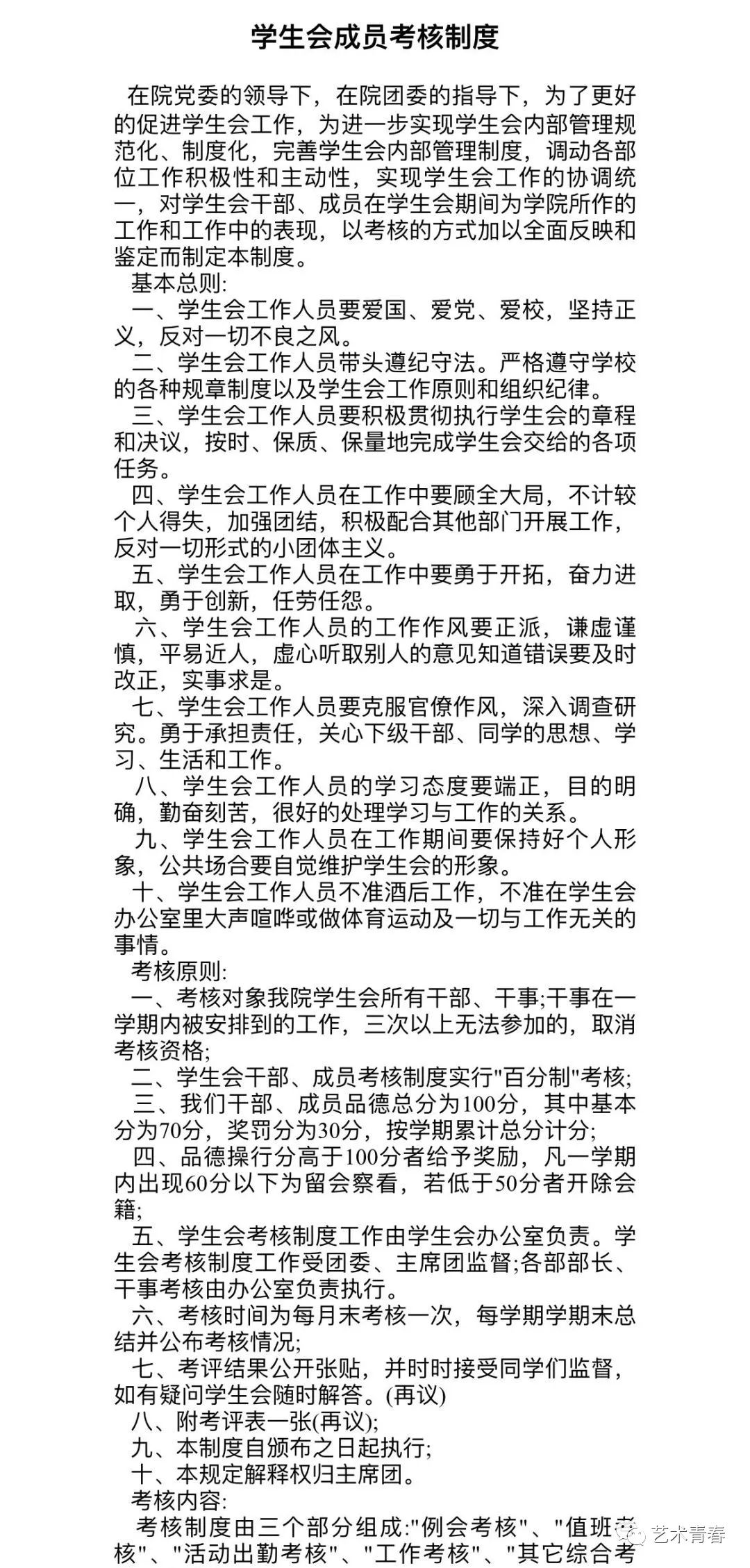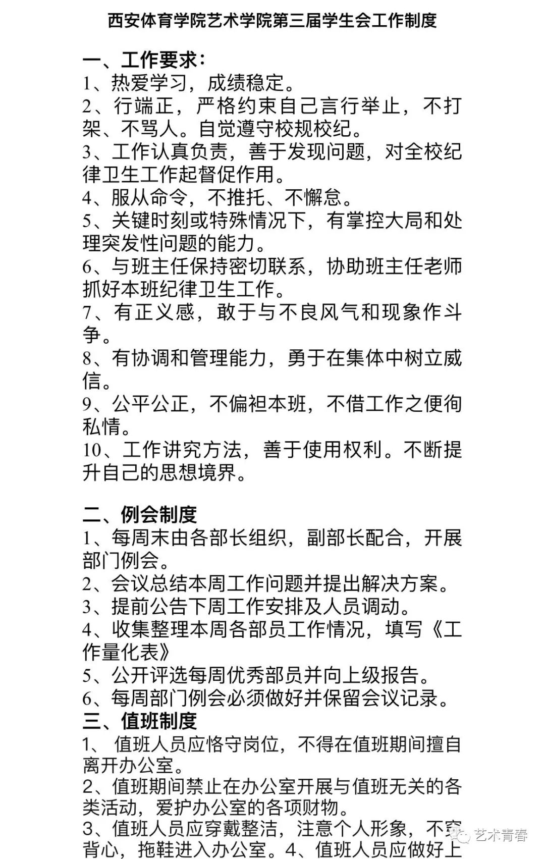 西安体育学院艺术学院学生会工作制度