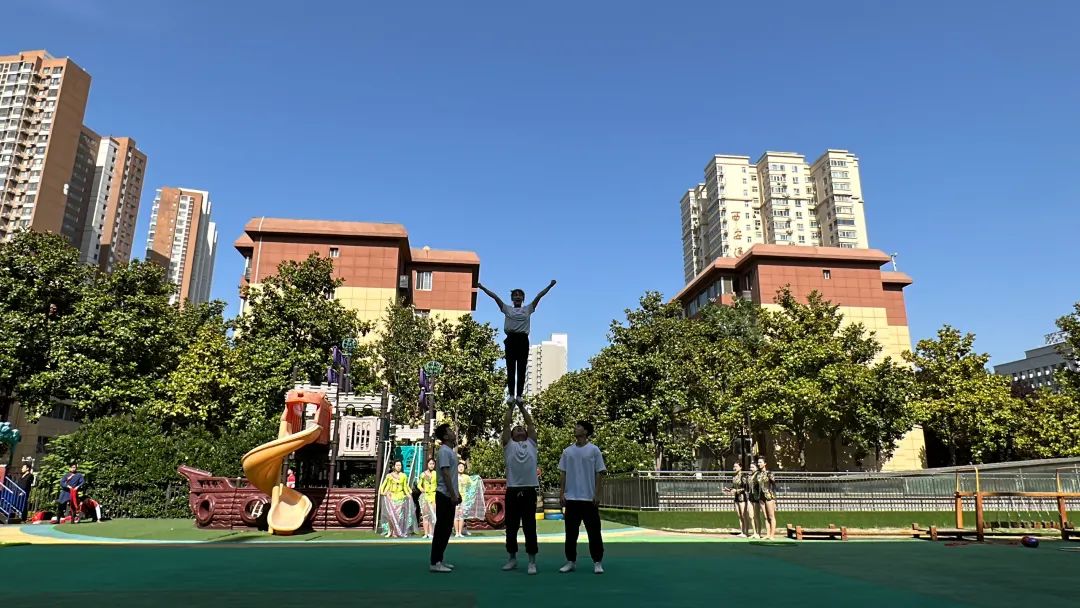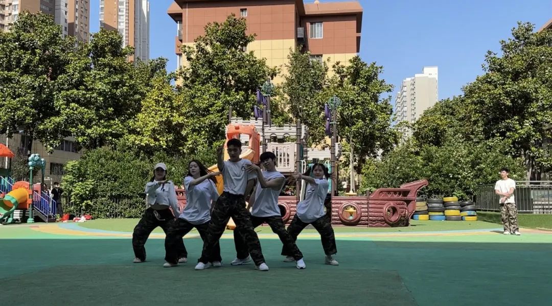 艺术学院大学生体育艺术表演团为五星幼儿园的小朋友们带来了精彩的体育艺术表演,用红色歌曲与排舞结合的形式,讴歌党的领导、讴歌社会主义新时代,营造浓厚的主题学习氛围,同时进一步促进红色校园体育文化推广,深入开展体教融合。