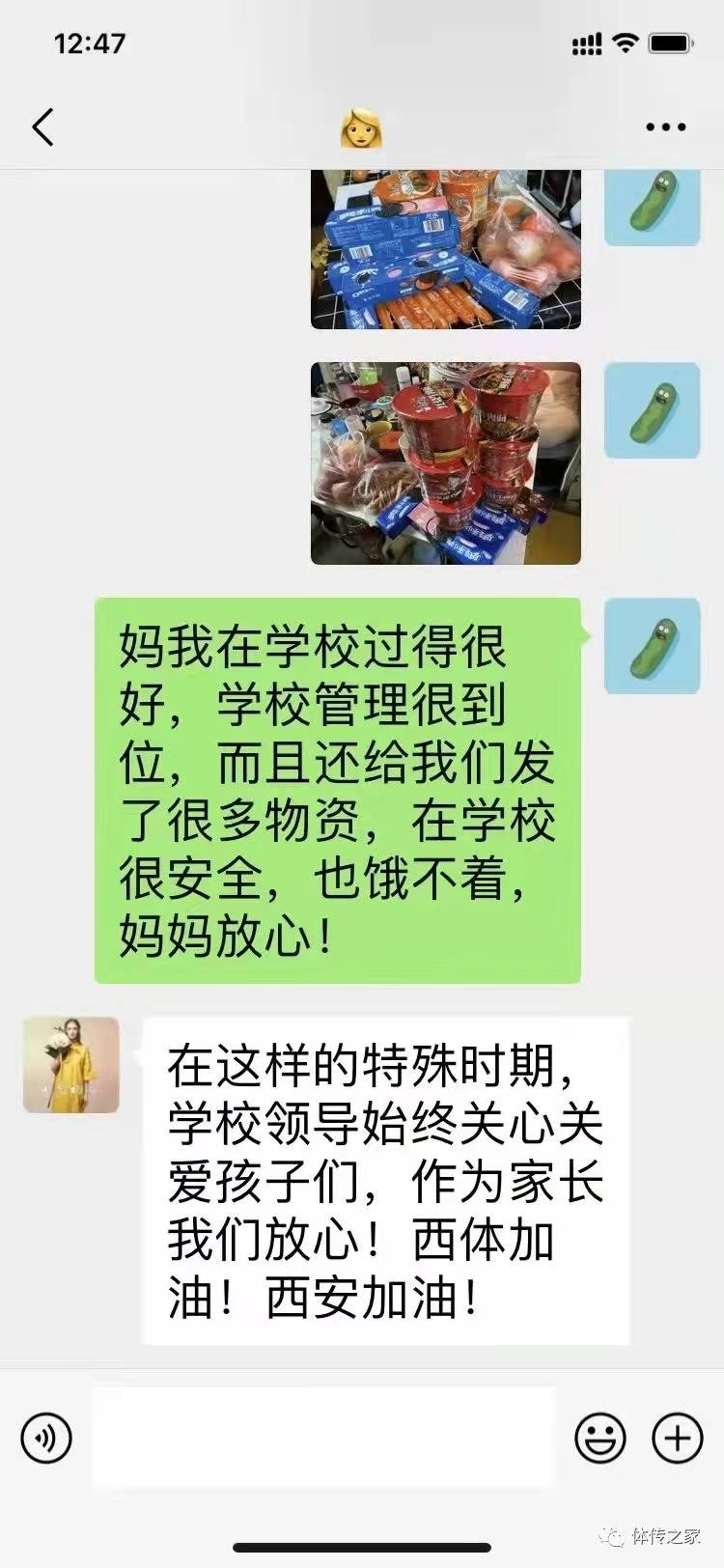 学生家长马玲说在这样的特殊时期,学校领导始终关心关爱孩子们,作为家长我们放心!西体加油!西安加油!