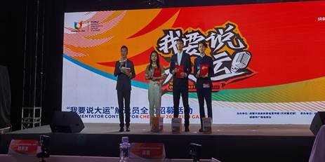 5月8日,由成都大运会组委会、成都市广播电视台主办的《我要说大运》解说员全国招募活动决赛在成都圆满落幕。经过全国初赛、复赛、决赛,四个赛区59所高校600多名选手的激烈角逐,我校体育新闻与传媒学院18级播音专业学生刘沛元荣获全国冠军,20级播音专业学生魏琳荣获全国亚军及最佳人气奖,20、21级播音专业学生丁一、王航荣获大赛优秀奖。成都大运会将于7月28日正式开幕,至此我校获奖学子将会参与到世界大学生运动会官方平台的解说工作当中,向世界展现西体青年学子的风采和新声。