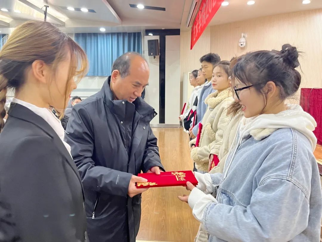 艺术学院党委组织员缑荣涛为军训感言主题征文比赛荣获一二三等奖同学颁奖