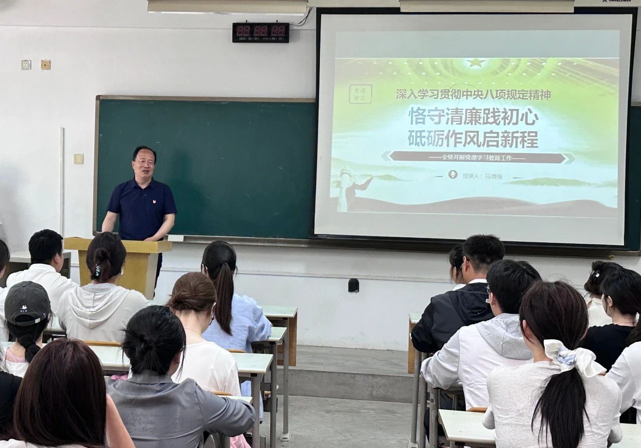 活动伊始,党委书记马增强以党课形式开展党性教育,首先向圆满完成学业的毕业生党员送上祝贺。他细数大家在校期间的奋斗足迹:在党组织活动中勇挑重担,在志愿服务里传递温暖,在学术竞赛中突破自我。“作为新时代党员,清廉是立身之本,中央八项规定是行为明镜。”马书记字字千钧,对毕业生党员提出“三个坚守”:坚守理想信念,在大是大非前站稳政治立场;坚守人民立场,以公仆之心践行服务宗旨;坚守奋斗底色,用实干担当锤炼过硬作风。他特别告诫,无论未来扎根传媒行业、投身体育事业,还是奔赴其他领域,都要以中央八项规定为标尺,坚决抵制享乐主义、奢靡之风,永葆共产党人清正廉洁的政治本色,以清正廉洁的品格和扎实的工作作风,在时代浪潮中贡献青春力量。