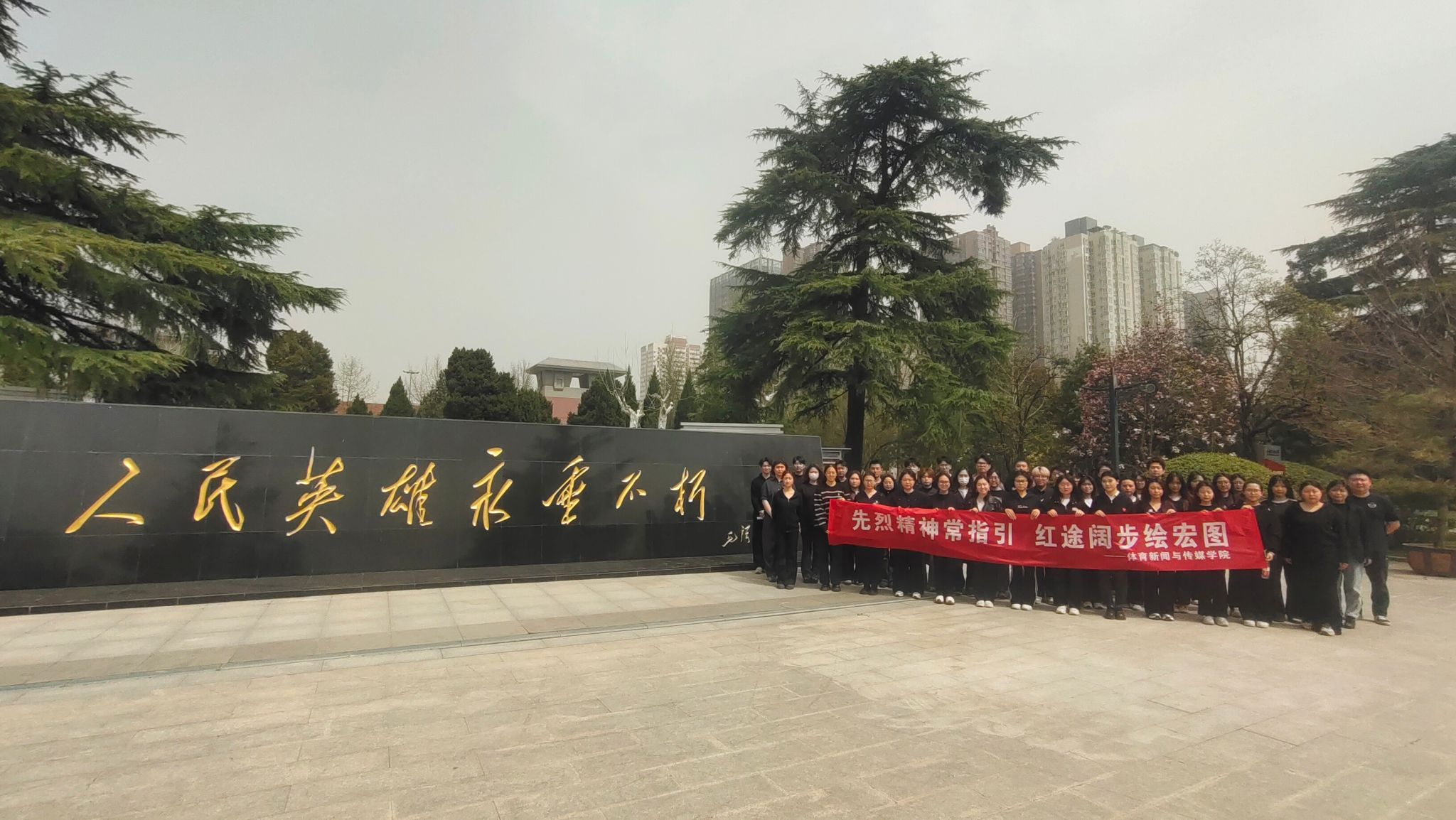 2025年4月体育新闻与传媒学院组织优秀学生代表、入党积极分子、预备党员及正式党员齐聚西安烈士陵园,开展了一场庄重的清明祭扫活动,以缅怀革命先烈,传承红色精神。