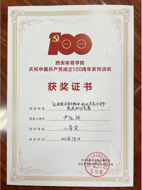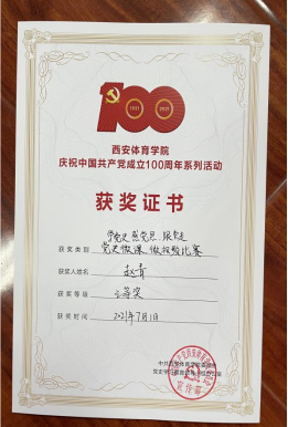 为庆祝中国共产党成立100周年,进一步引导全体师生传承红色基因,汲取奋进力量,用实际行动抒发爱国之心、报国之情、强国之志,将“学党史、悟思想、办实事、开新局”的要求落实在校园生活的方方面面,我院师生积极参与西安体育学院庆祝中国共产党成立100周年系列活动,并在本次系列活动中取得优异成绩,获奖如下: