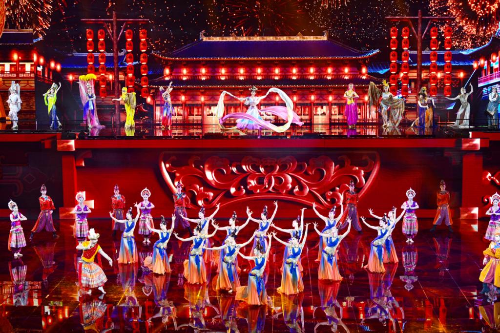 第一篇章《丝路长安》,我院学生身着丝路沿线国家服饰,为观众呈现了一场穿越千年的精彩大秀,传递出挽起世界手臂的热情。