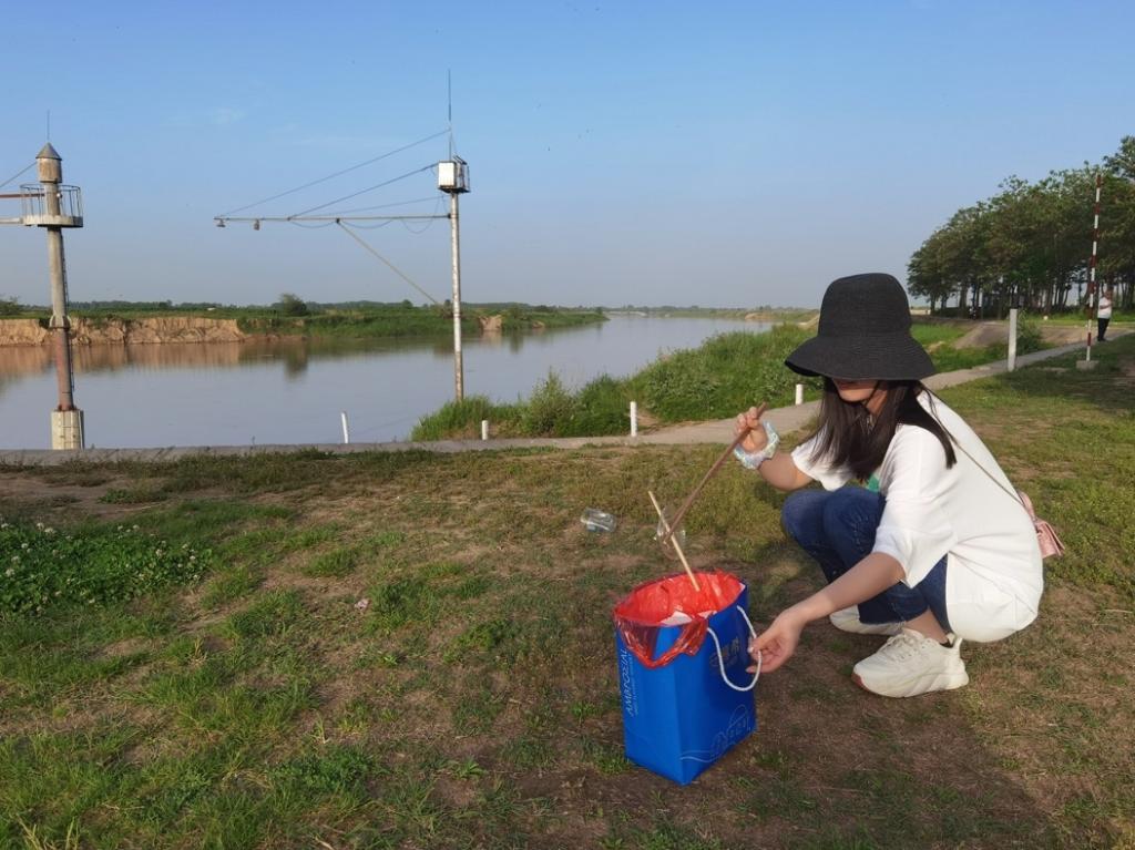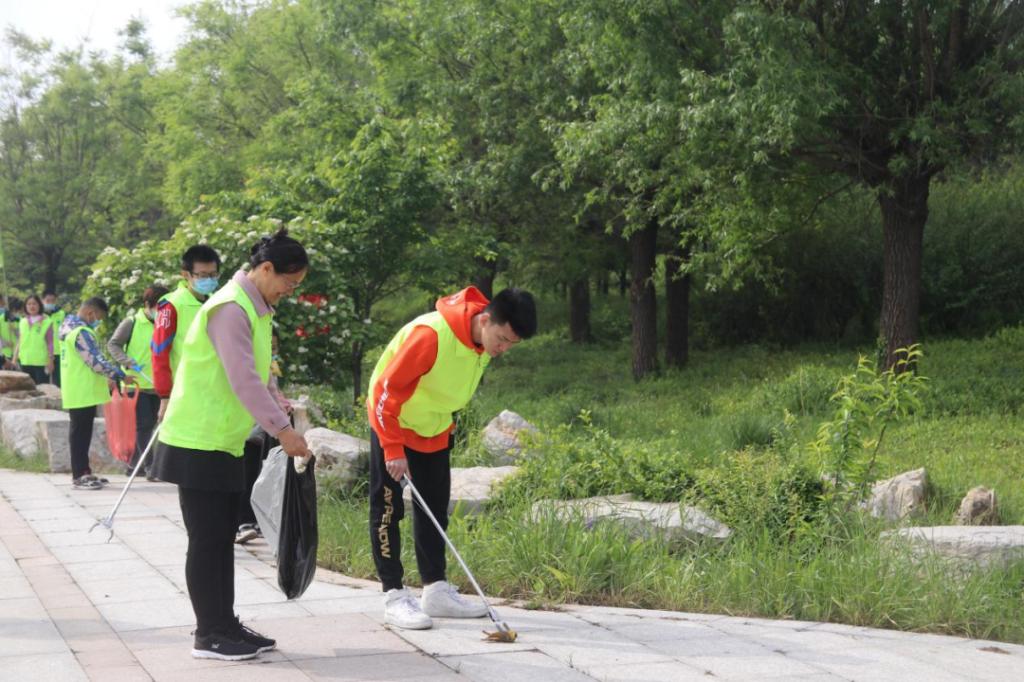 在河提公园捡拾垃圾,不仅美化环境保护水源,也警醒前来游玩的人们不乱扔垃圾,我院师生用实际行动为构建美好社会生活出一份微薄之力。
