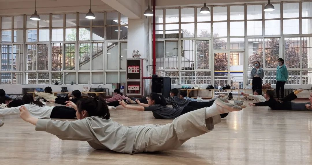 热身动作做完,就是早功的重头戏:软度训练。大家都知道,如果柔韧性差,就会影响动作的掌握,还会限制力量及速度、协调能力的发挥,也会造成肌肉、韧带损伤。所以说,软度训练至关重要。