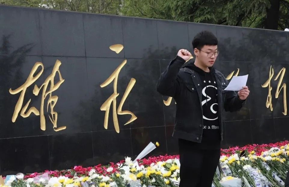 艺术学院学生在烈士墓碑前默哀,以表达对革命先烈最真挚的缅怀之意和敬佩之情,感受从先烈们传递下来的不屈精神与爱国之情。