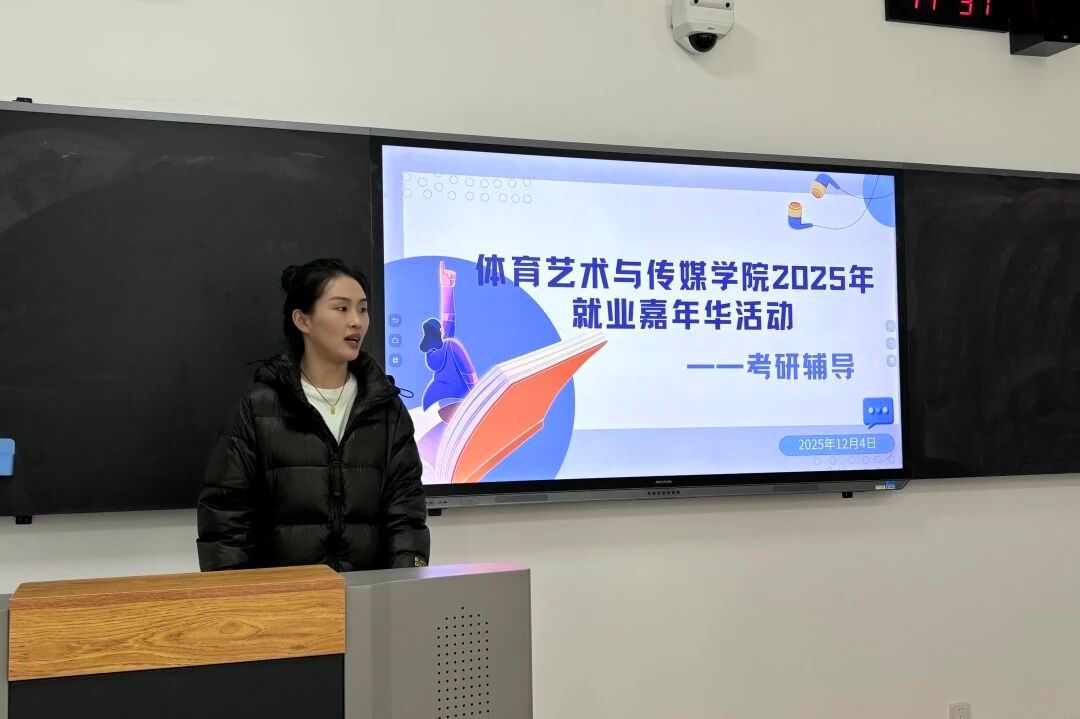 为进一步明晰学生升学考研方向,提升备考效率与求职竞争力,增强备考信心,搭建全方位学业职业指导平台,近日,体育艺术与传媒学院于教学楼214举办2025年就业嘉年华考研辅导专场活动。
