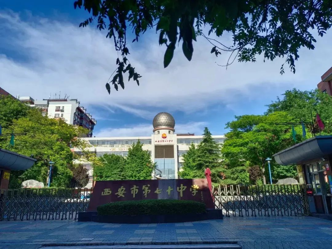 西安市第七十中学是一所享有教育名校殊荣的莲湖区区属完全中学,学校是陕西省示范高中、西安市特色示范高中。作为一所“双示范高中”,学校秉承 “有教无类,因材施教,为学生一生发展奠基”的办学理念,践行“教学生一天,想学生一生”的教育思想,在全面提升教学质量的同时,大力实施素质教育,形成了全面加特长的办学特色。先后荣获“国家级语言文字规范化示范学校”、“国家级体育传统项目学校”、“陕西省文明校园”、“陕西省中小学德育工作先进集体”、“陕西省教育系统先进集体”、“陕西省艺术教育示范学校”、“陕西省教科研先进单位”等荣誉称号。