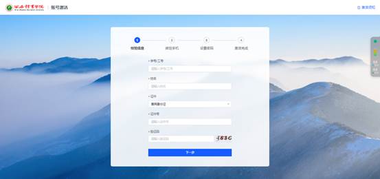 进入后点击账号激活,填写您的新工号、姓名及身份证号,确认身份的有效性;